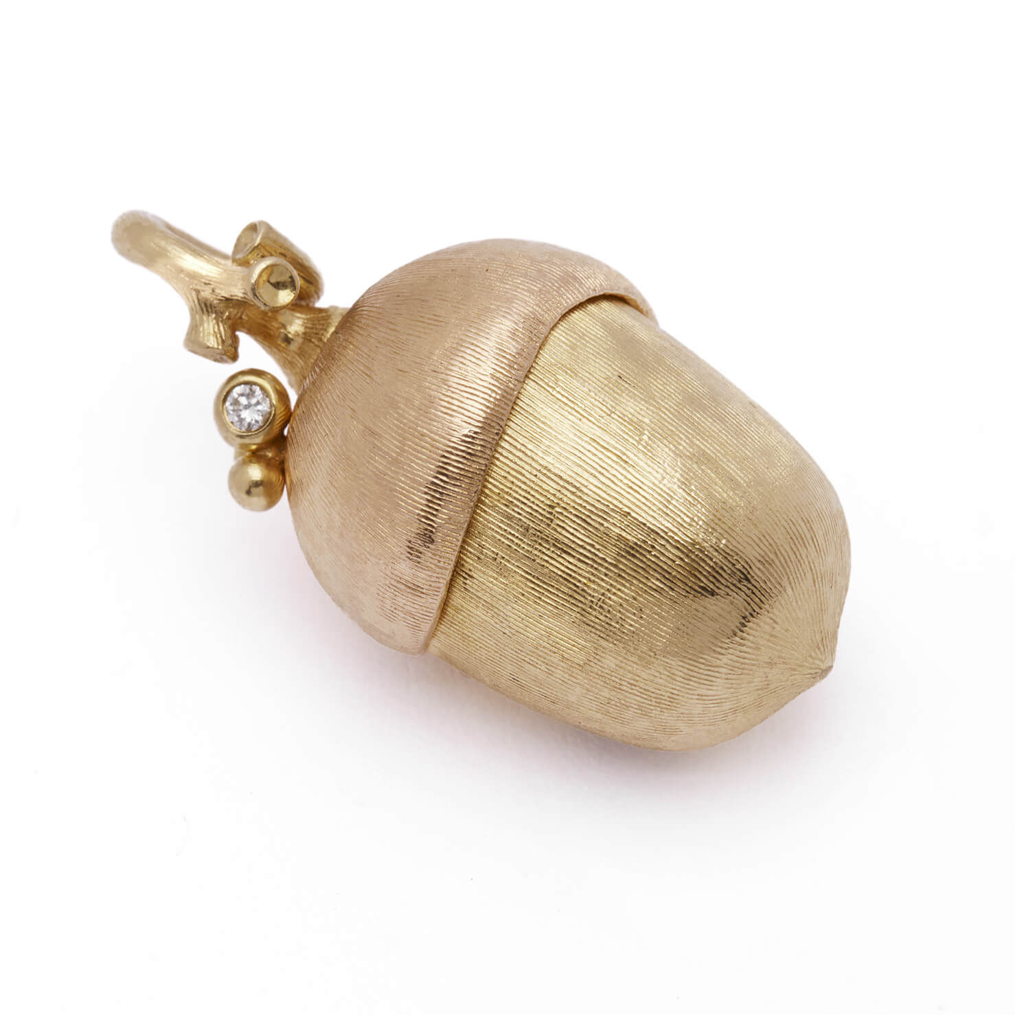 Ciondolo Ghianda in oro giallo satinato con diamante 0,02ct