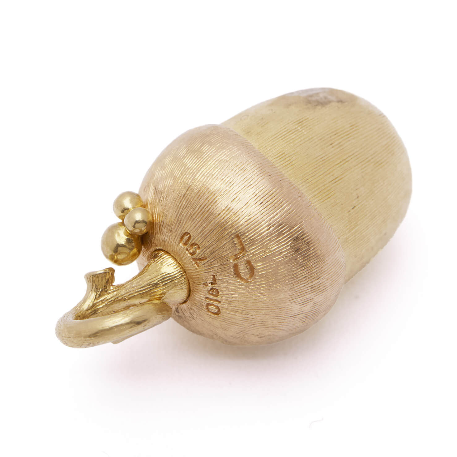 Ciondolo ghianda realizzato in oro giallo 18kt con diamante taglio round 0,02ct. Misure 2,7×1,5cm