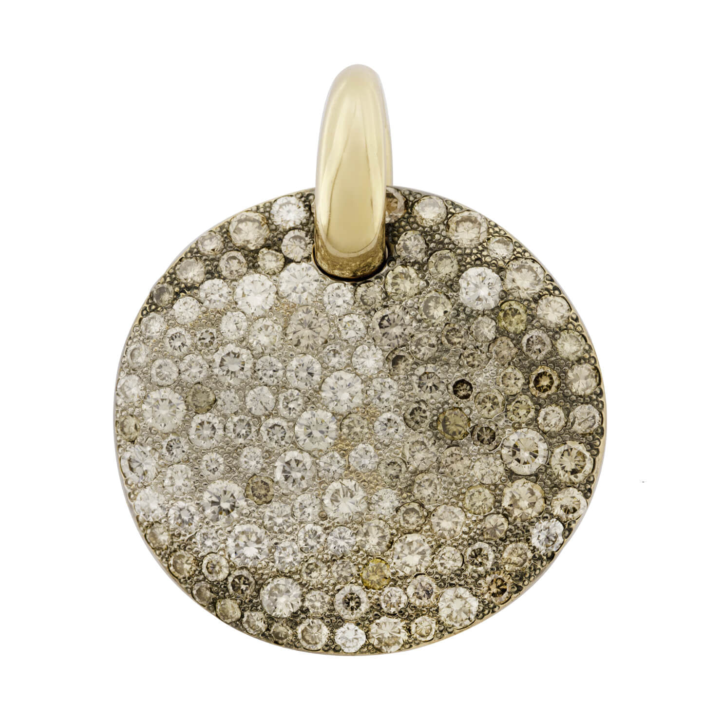Ciondolo Pomellato realizzato in oro giallo 18kt con diamanti bianchi e brown taglio round da 4,03ct tot.Diametro 2,60cm