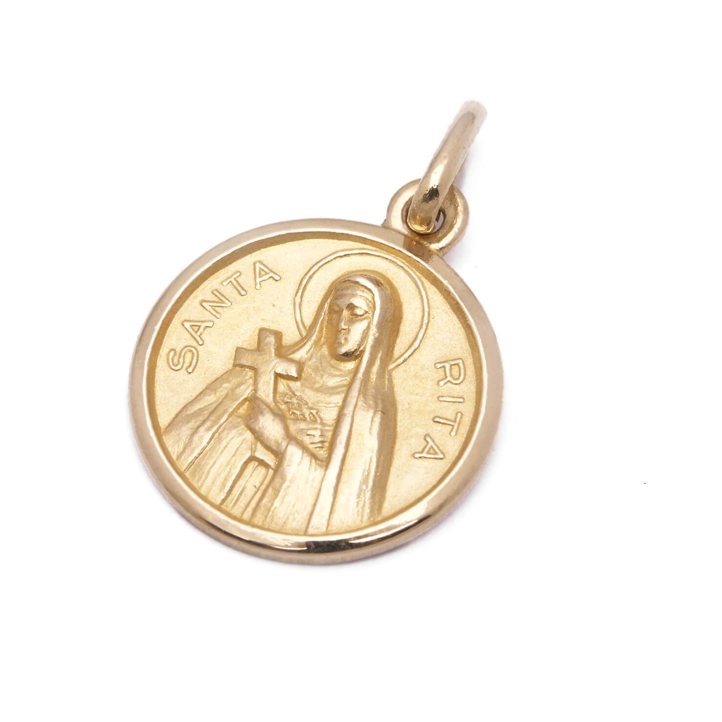 Ciondolo Santa Rita realizzato in oro giallo 18kt. Diametro 13mm