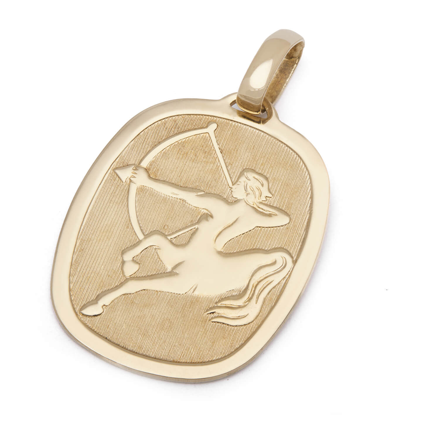 Ciondolo segno zodiacale sagittario realizzato in oro giallo 18kt. Misure 3,5x2cm