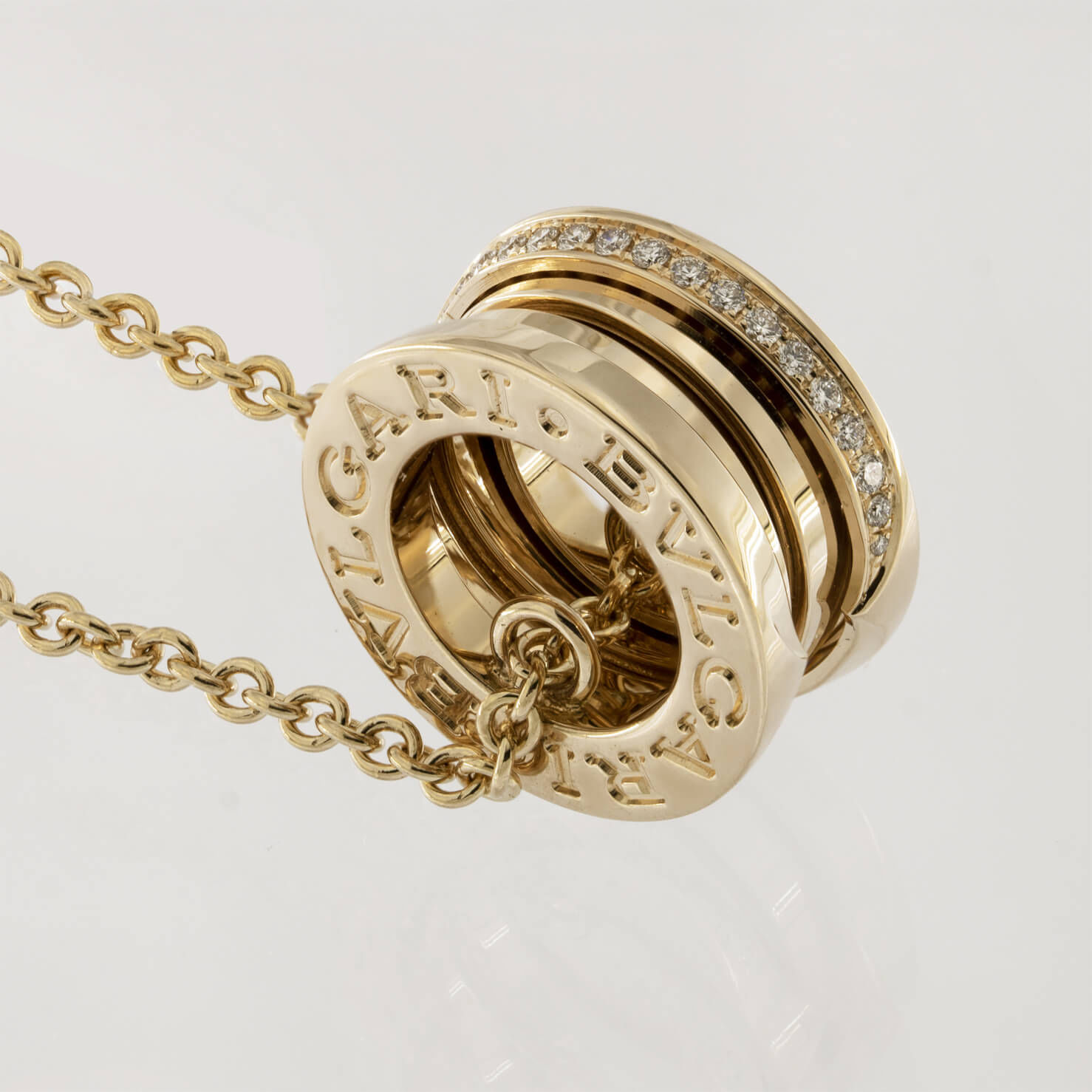 Collana con ciondolo Bzero1 realizzata in oro rosa 18kt e diamanti taglio round 0,38ct tot. Lunghezza collana da 38 a 45cm. Con scatola Bulgari