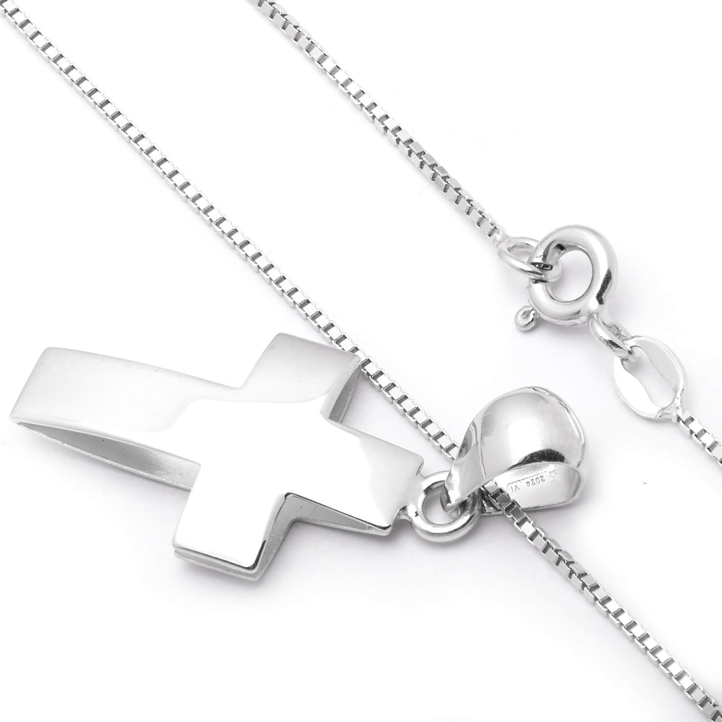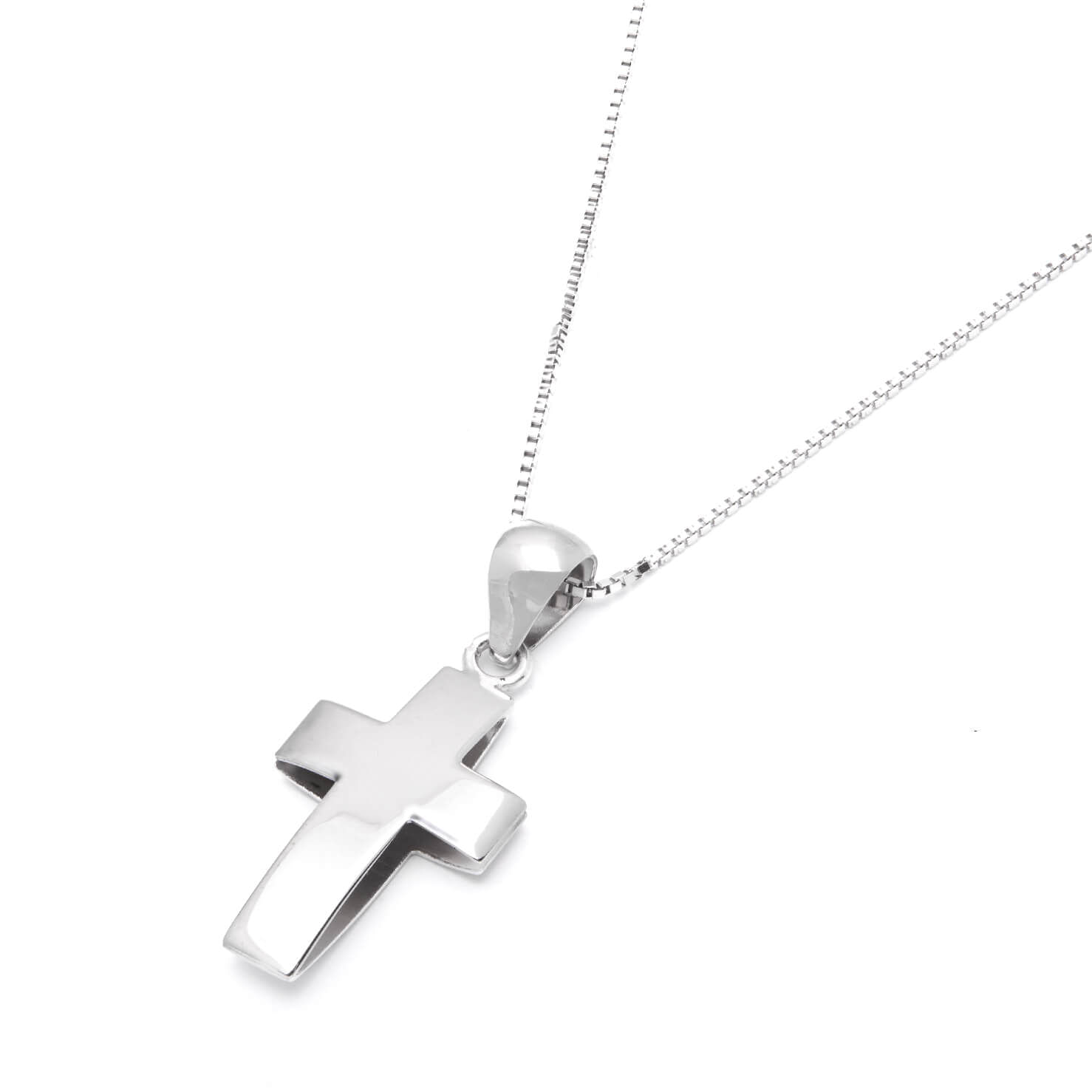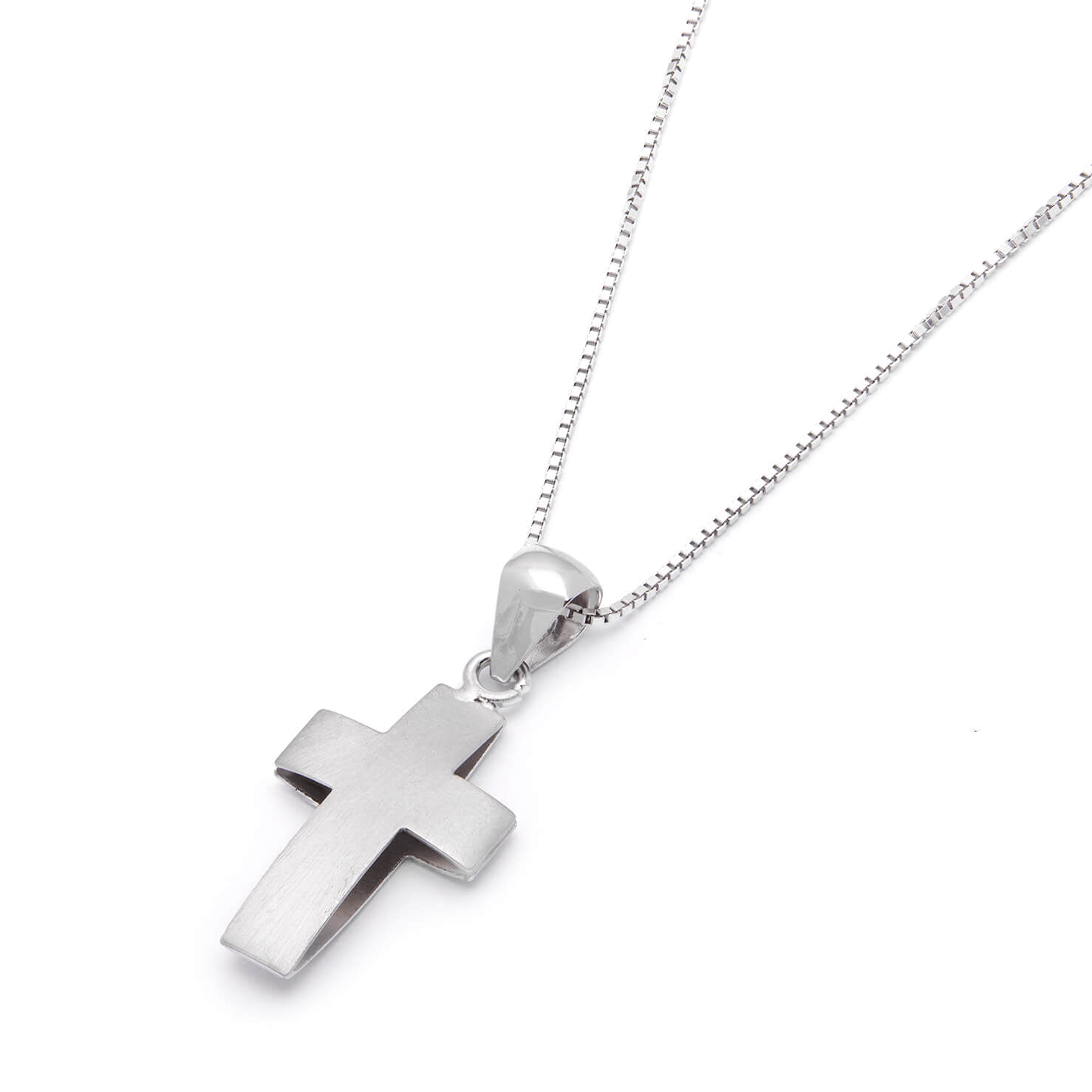 Collana con ciondolo croce in oro bianco lucido e satinato