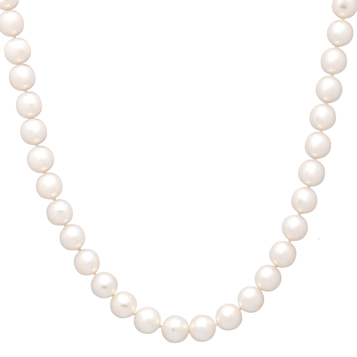 Collana di perle Tasaki Akoya 10mm con chiusura in oro bianco 18kt e diamante round 0,01ct. Lunghezza 46,5cm