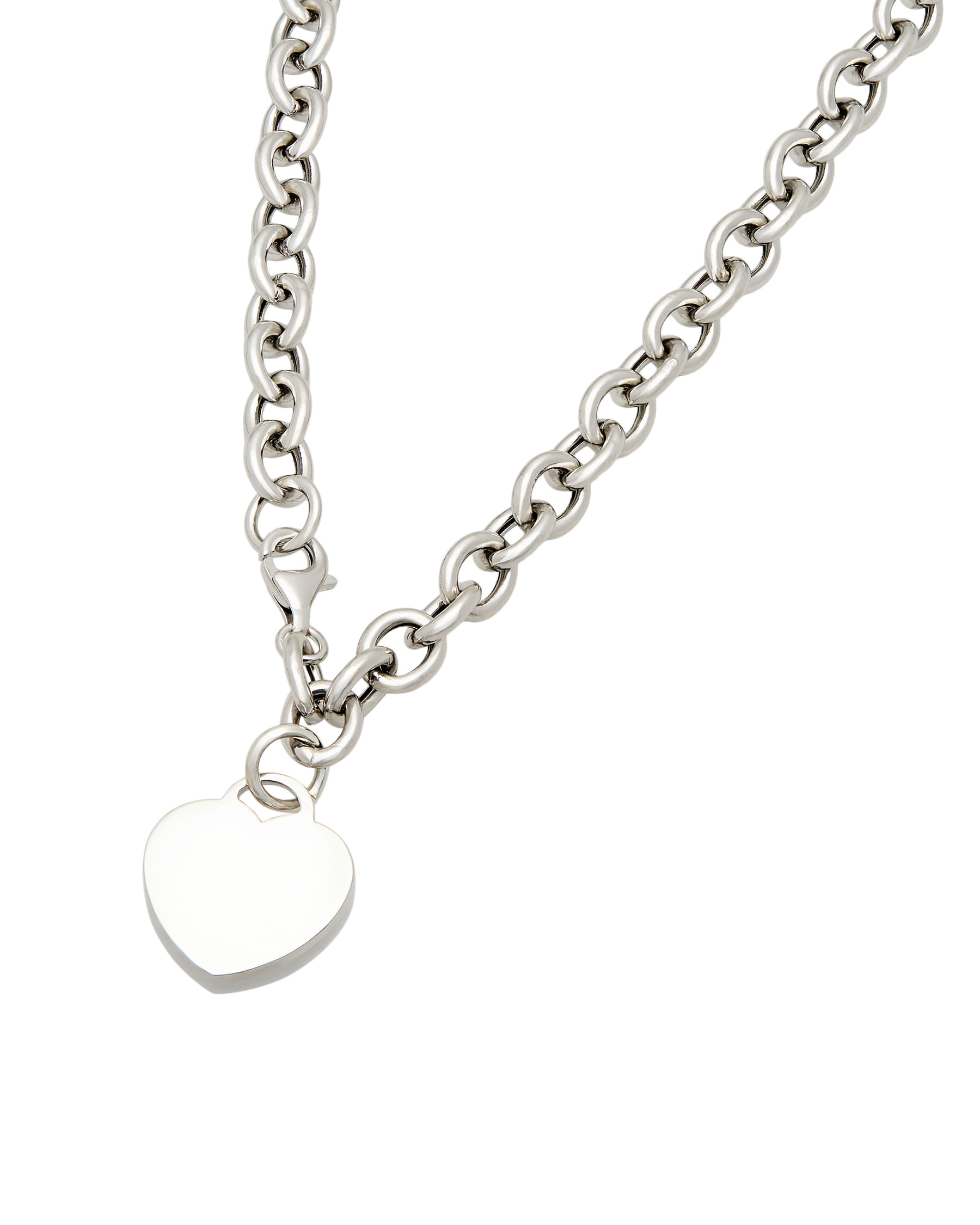 Collana in argento con maglia rolò grande e ciondolo cuore