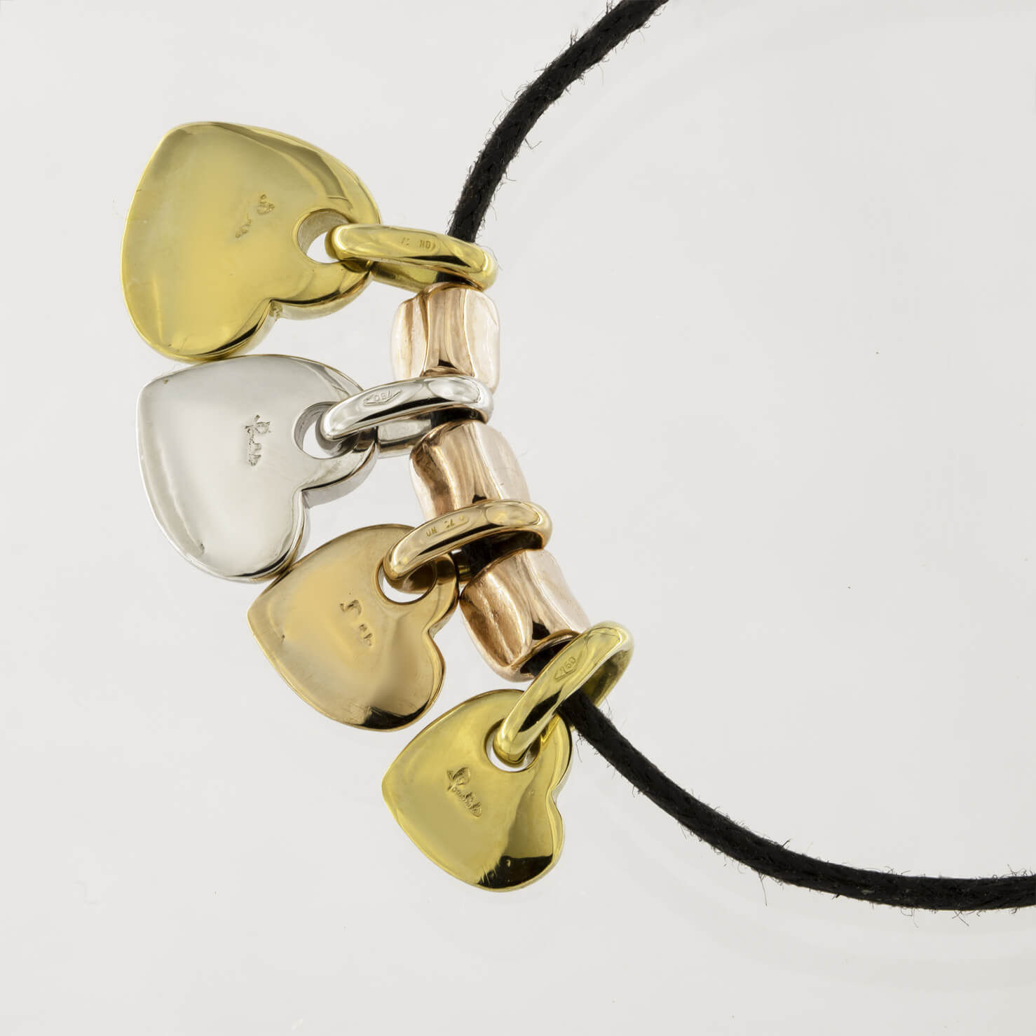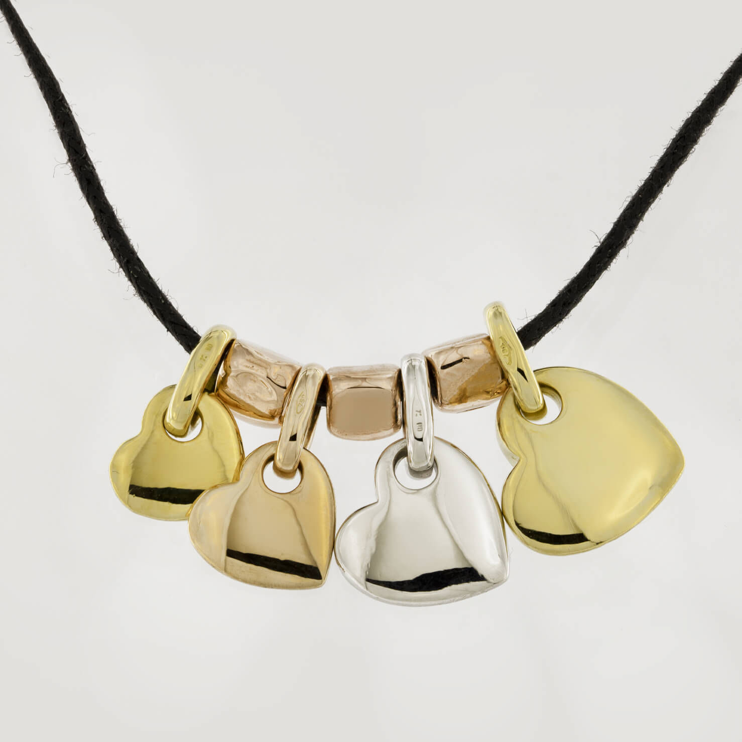 Collana Pomellato con ciondoli cuore e granelli in oro giallo bianco e rosa 18kt