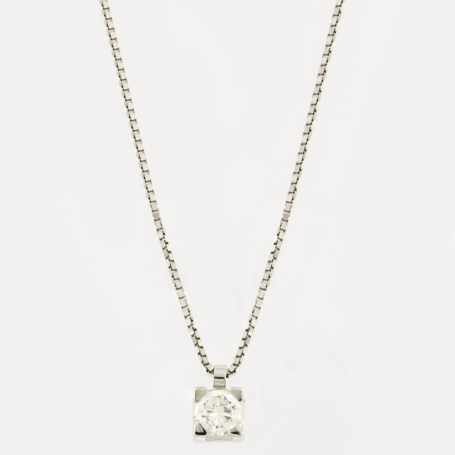 Collana punto luce realizzata in oro bianco 18kt con diamante taglio round 0,08ct. Lunghezza 44,5cm. L’articolo è una nuova creazione