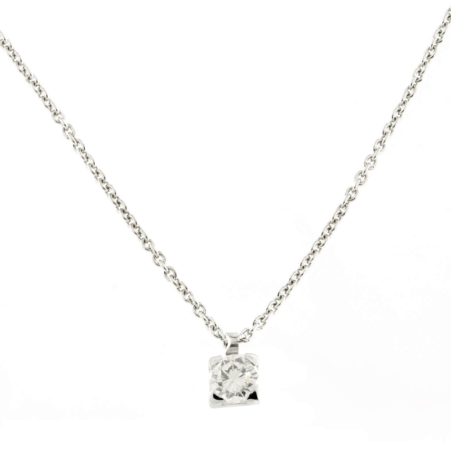 Collana punto luce realizzata in oro bianco 18kt e diamante taglio round 0,25ct. L’articolo è una nuova creazione