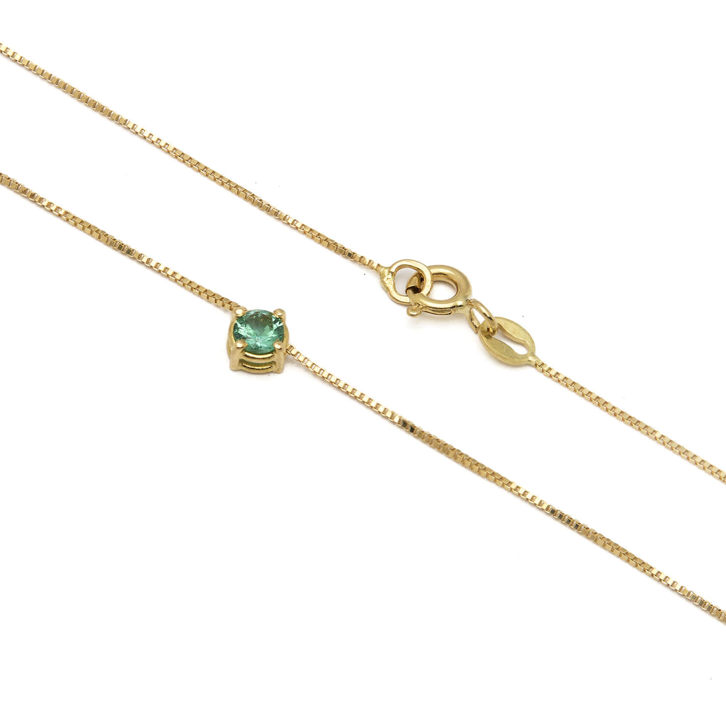 Collana punto luce realizzata in oro giallo 18kt con smeraldo 0,20ct. Lunghezza 41cm. L’articolo è una nuova creazione