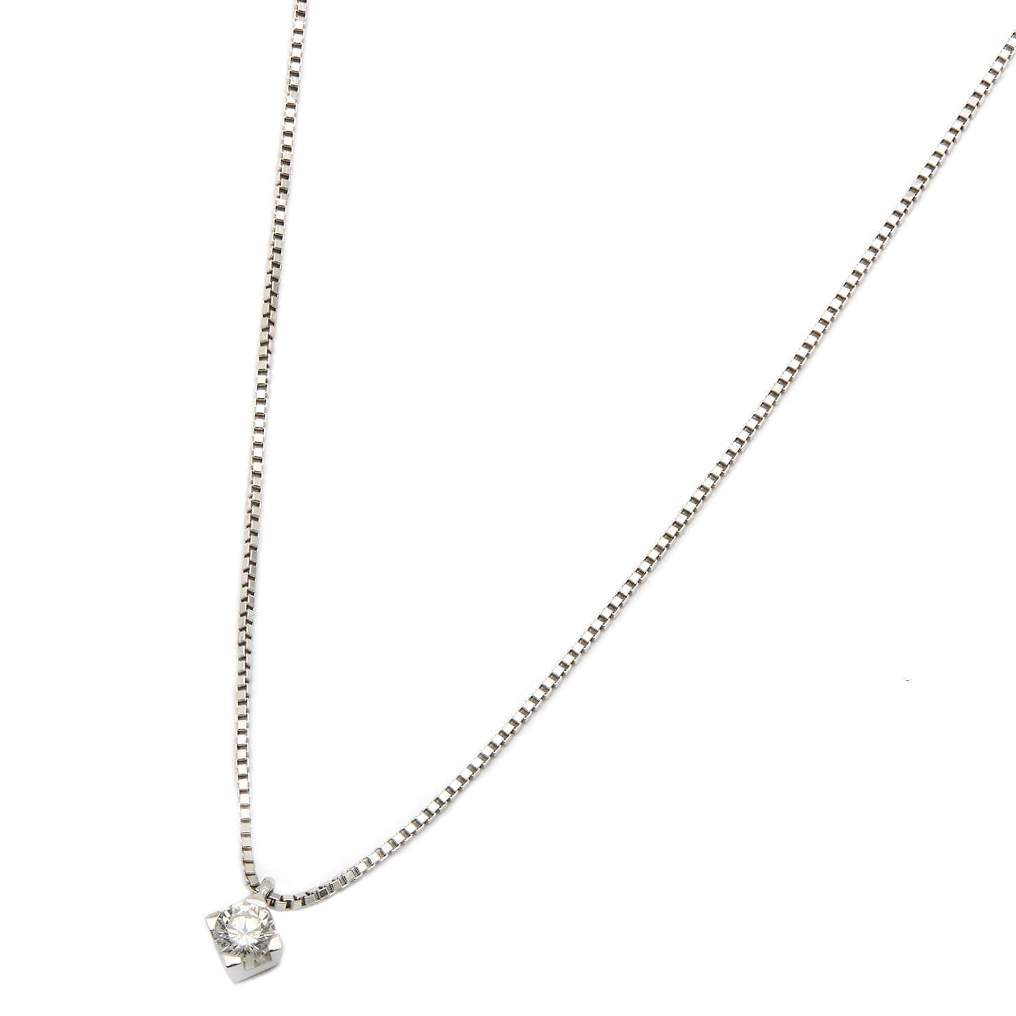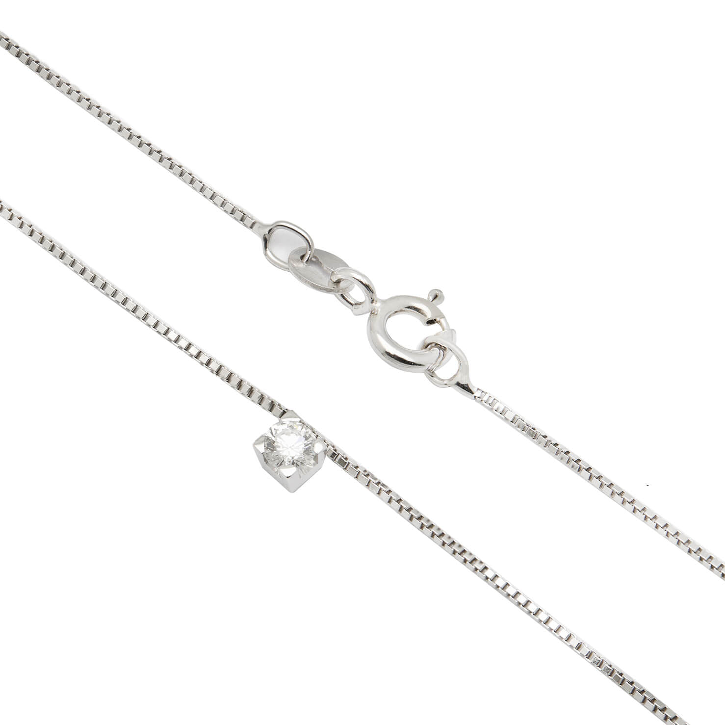 Collana punto luce tornita a rombo realizzata in oro bianco 18kt e diamante round 0,10ct . Lunghezza 41,5cm