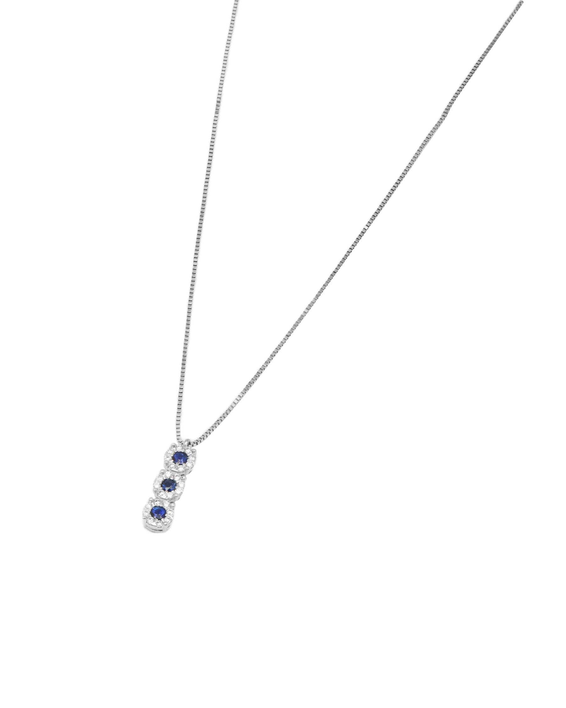 Una scelta che parla di lusso e ricercatezza. Questa collana puntoluce trilogy con zaffiri e diamanti in oro bianco 18 kt è l'accessorio che illumina il tuo stile e racconta una storia preziosa, pronta a diventare la protagonista della tua collezione!
