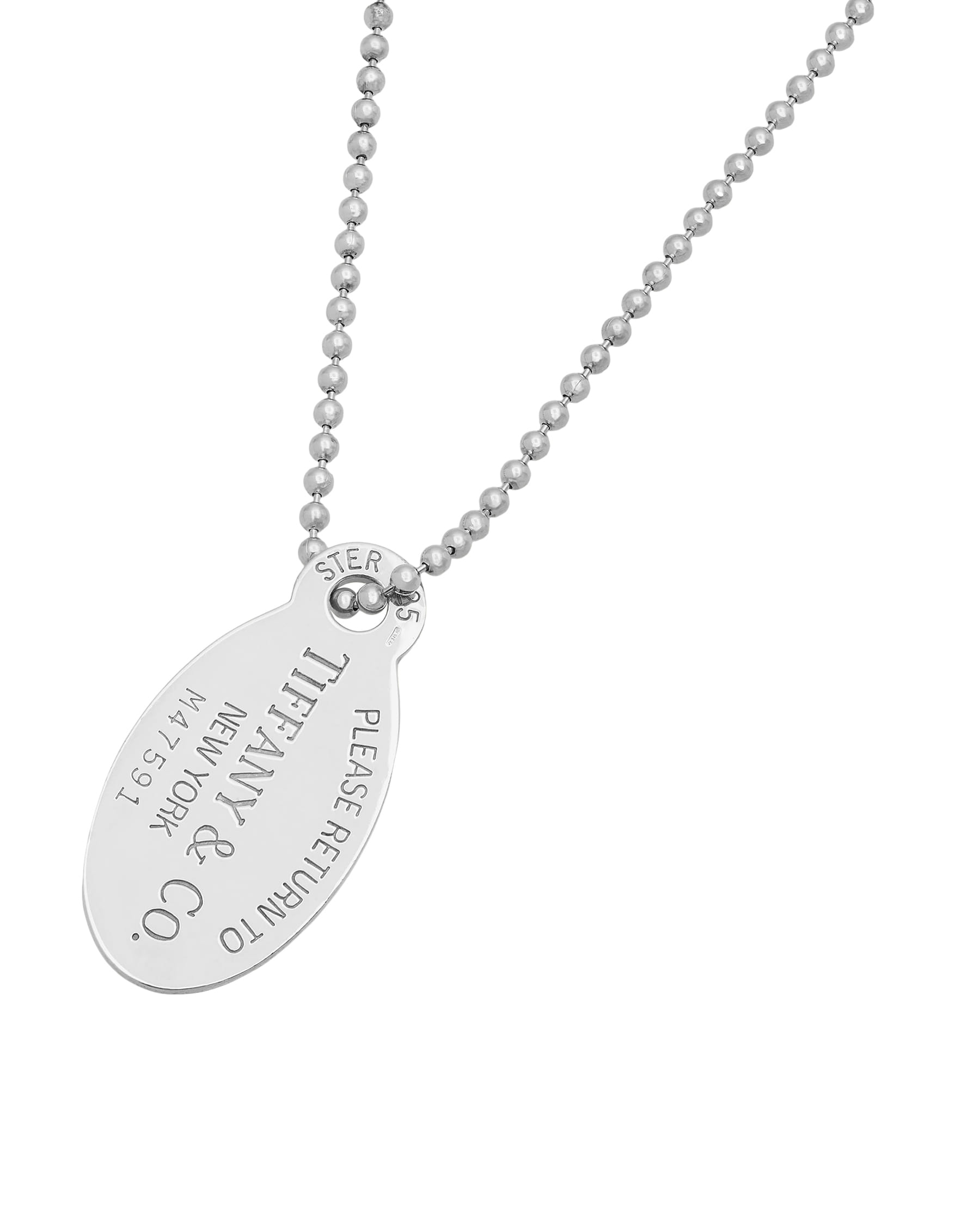La collana presenta un pendente ovale in argento 925%, raffinato e dall'iconico design Tiffany & Co..