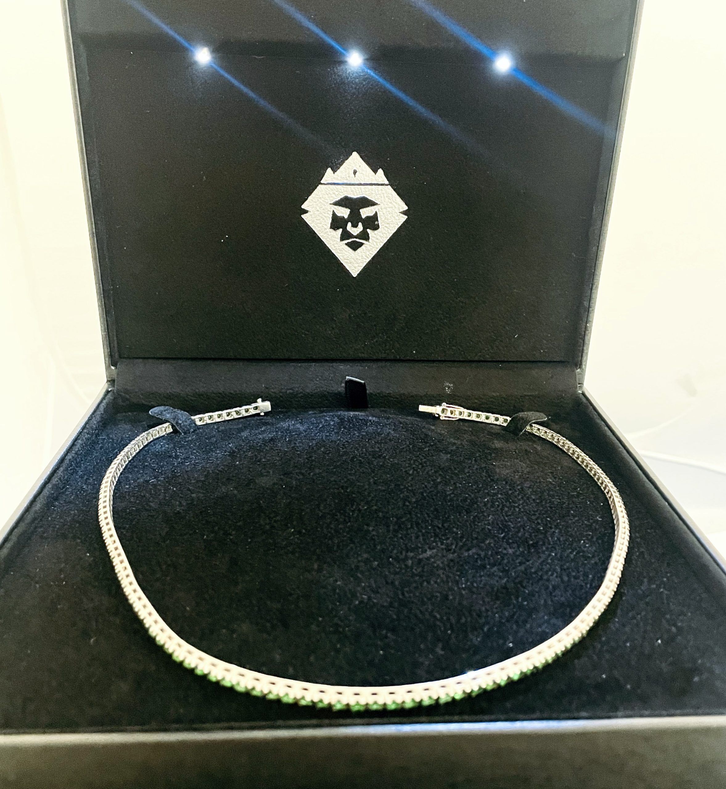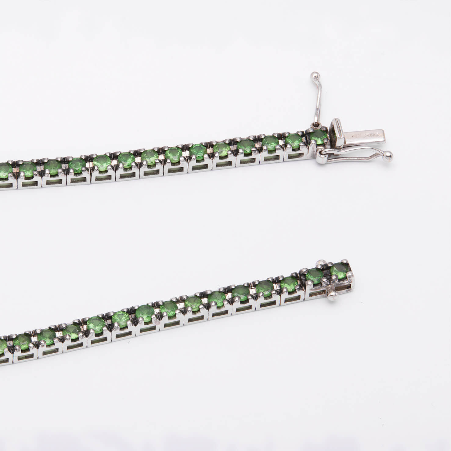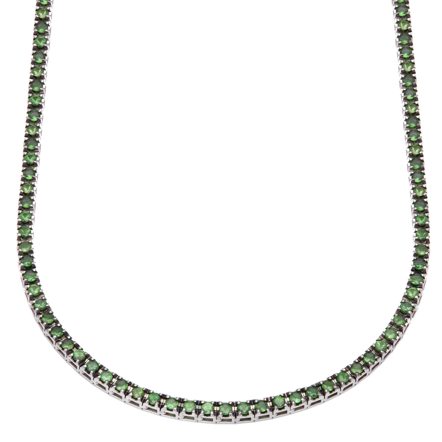 Collana tennis in oro bianco e tzavoriti taglio round 9,60ct tot