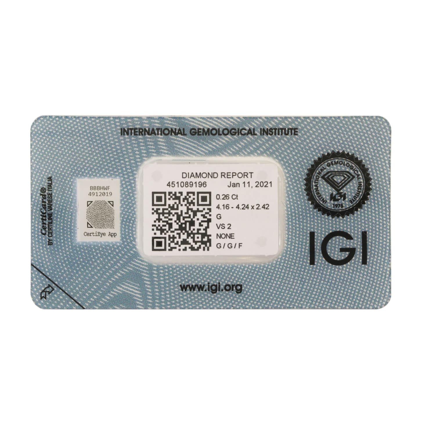 Diamante certificato IGI 0,26 ct
