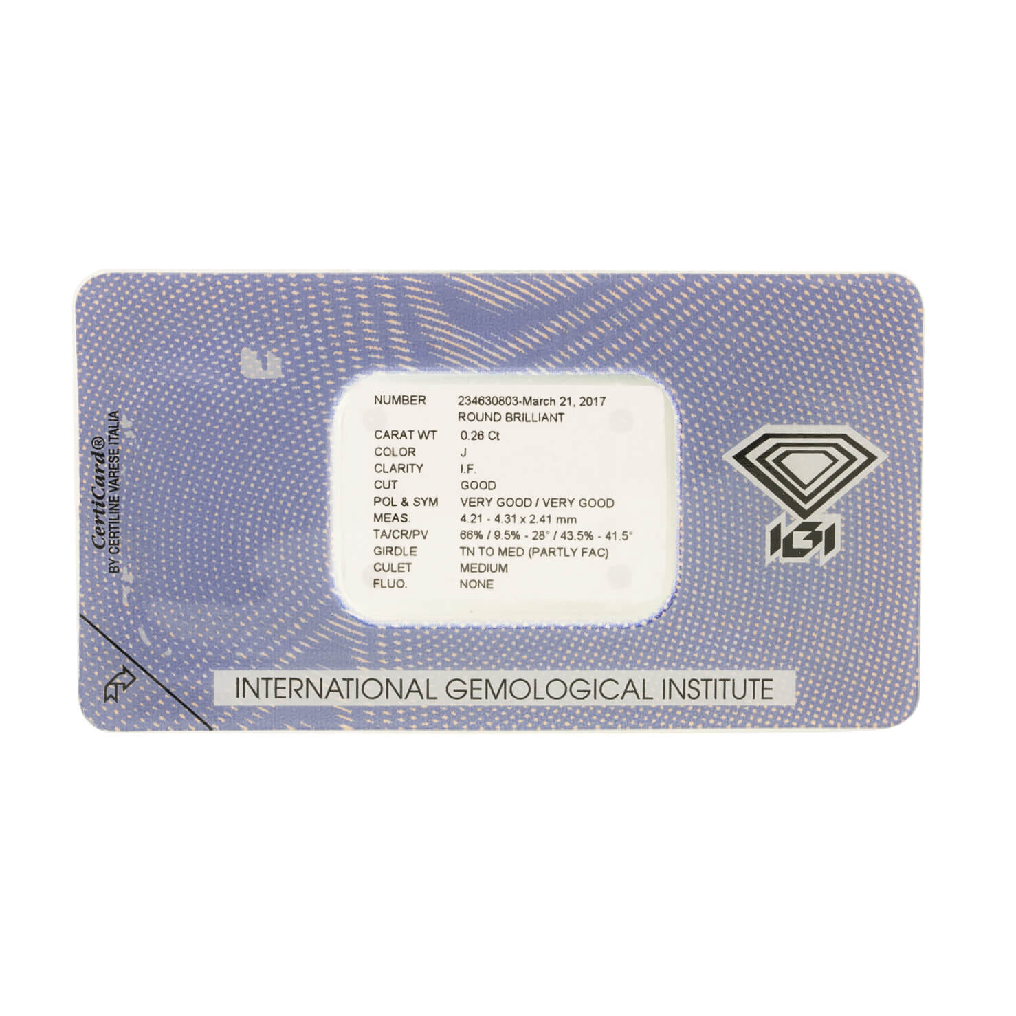 Diamante Round 0,26 Ct Certificato IGI