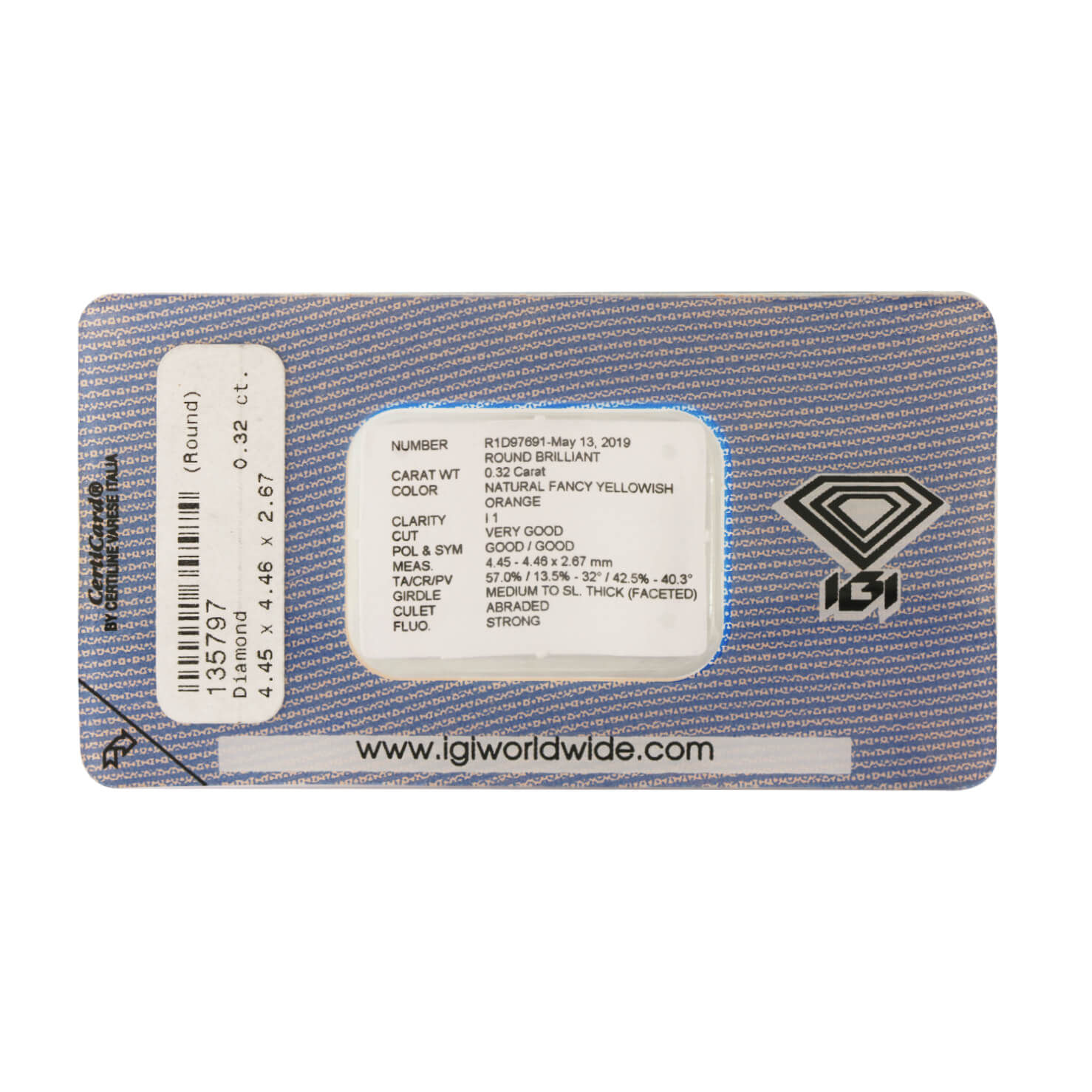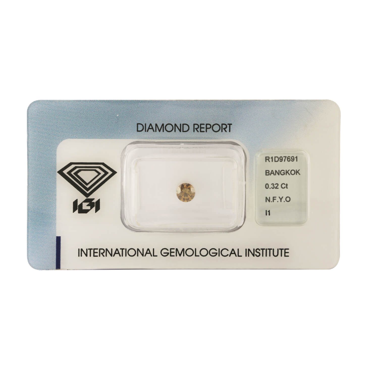 Diamante round natural fancy yellowish orange certificato IGI 0,32 ct