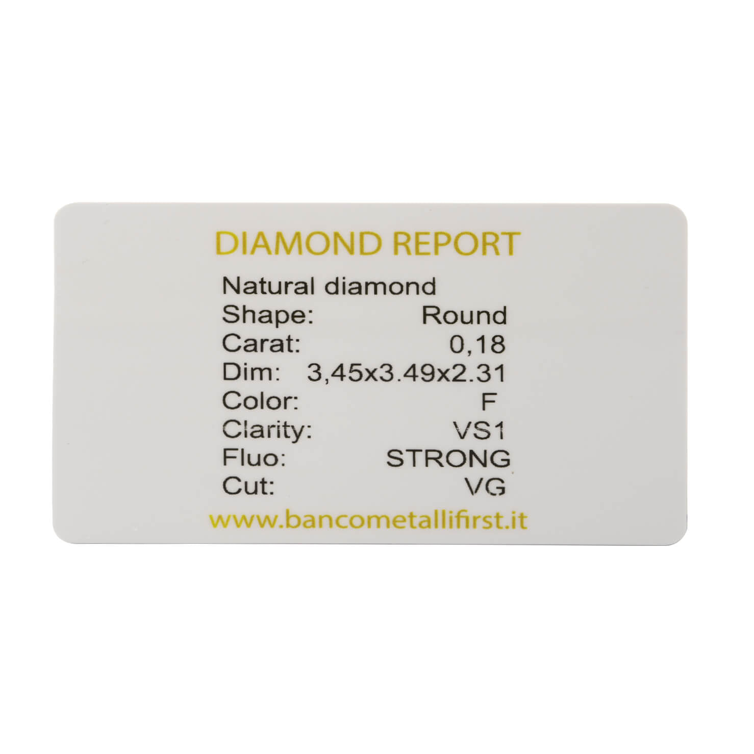 Diamante taglio round 0,18ct certificato Orofirst