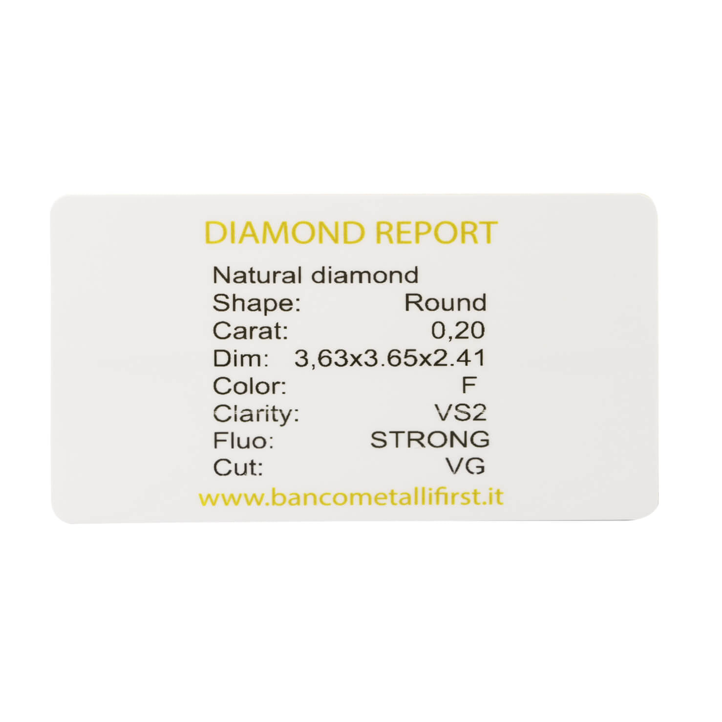 Diamante taglio round 0,20ct certificato Orofirst