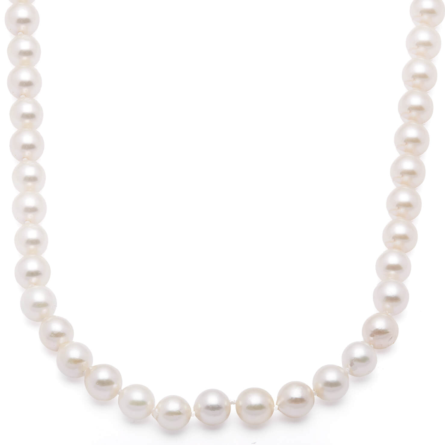 Girocollo Re Carlo con perle da 7mm e fermezza realizzato in oro bianco 18kt e diamanti round 0,04ct tot. Lunghezza 52cm