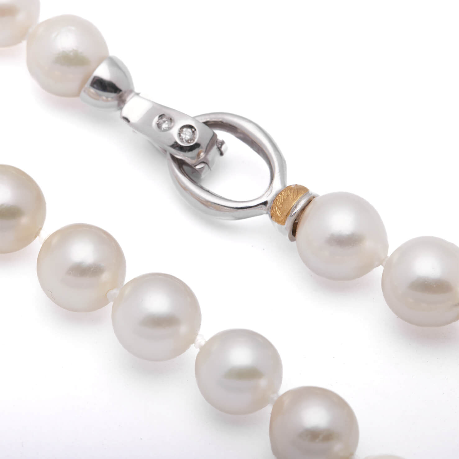 Girocollo Re Carlo con perle da 7mm e fermezza in oro bianco e diamanti 0,04ct tot