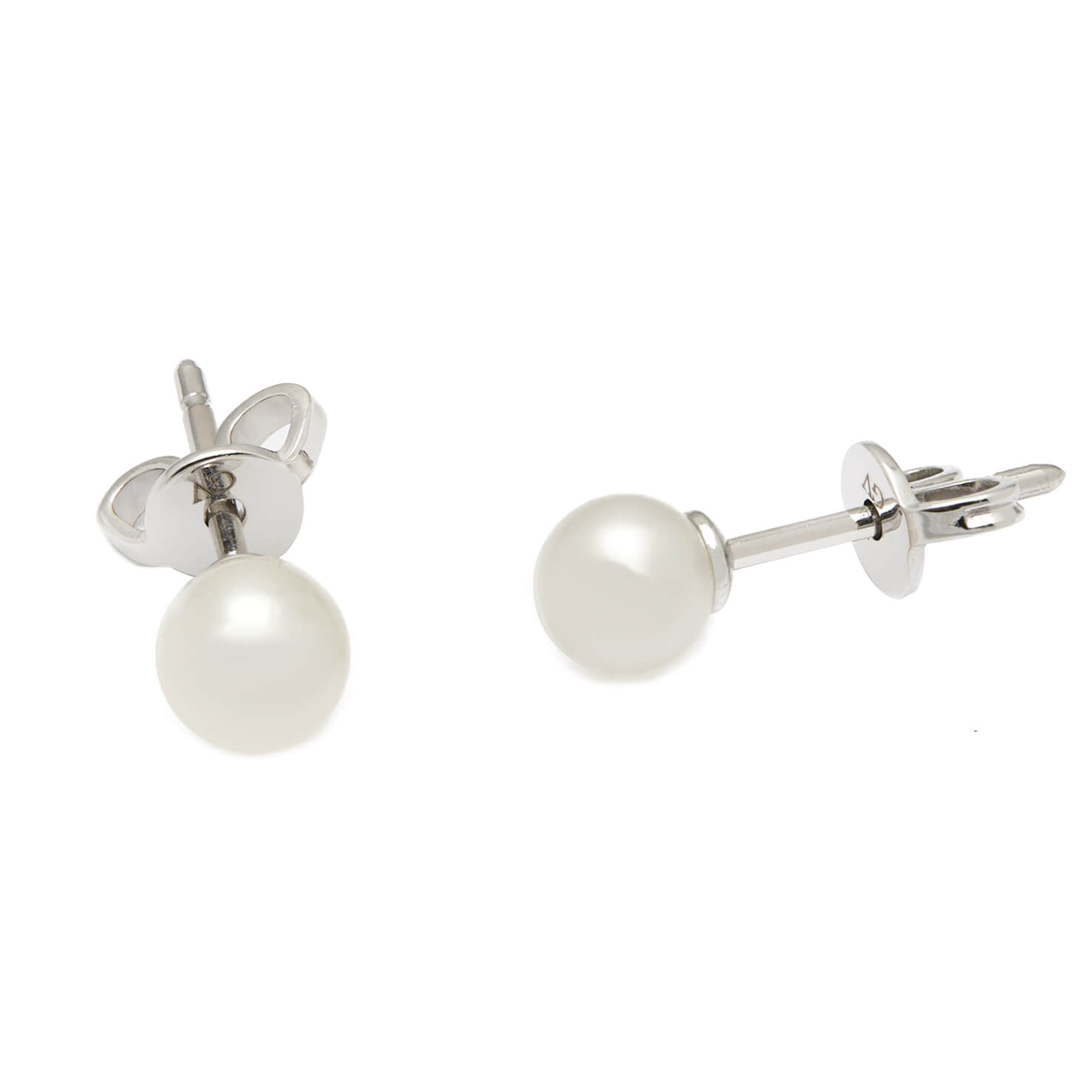 Orecchini a lobo in oro bianco e perle bianche da 5mm