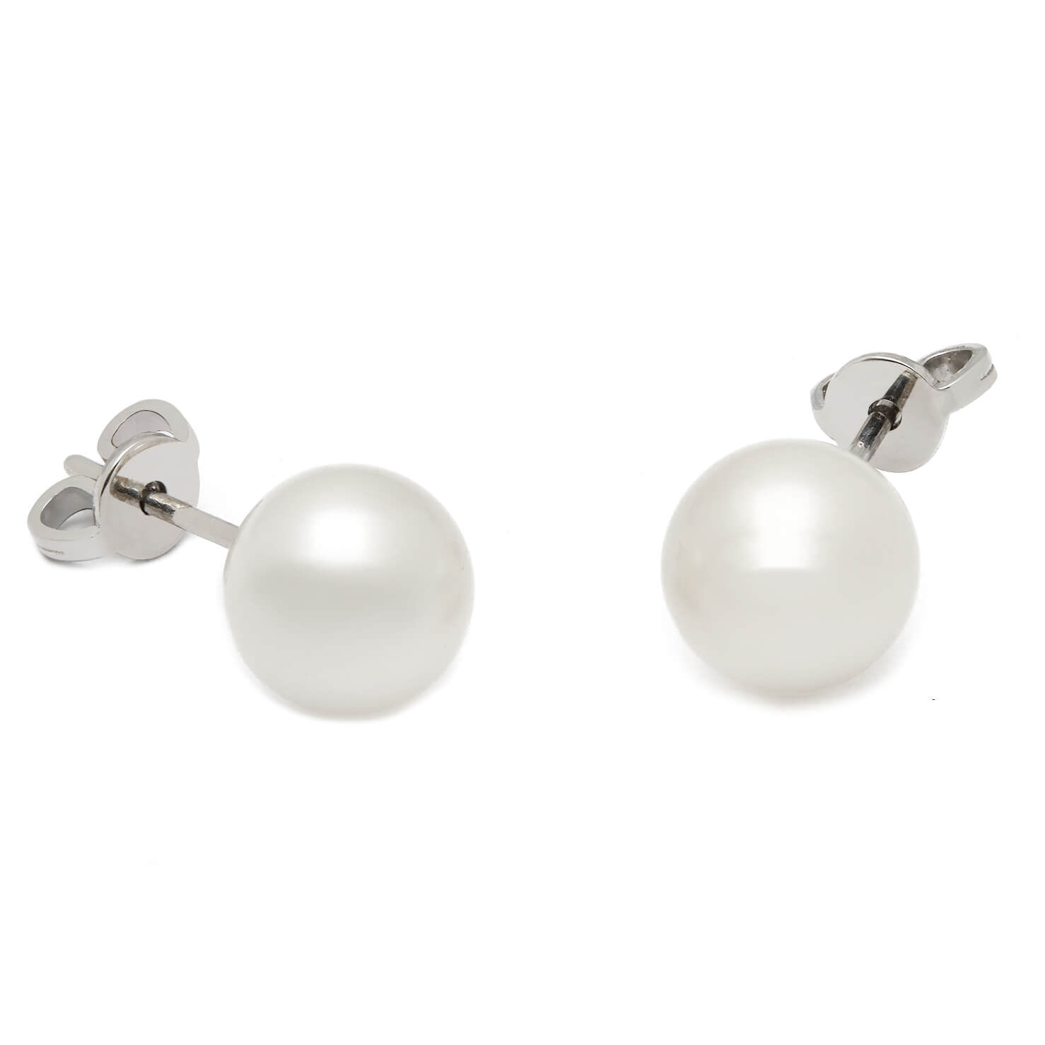 Orecchini a lobo in oro bianco e perle bianche da 9mm