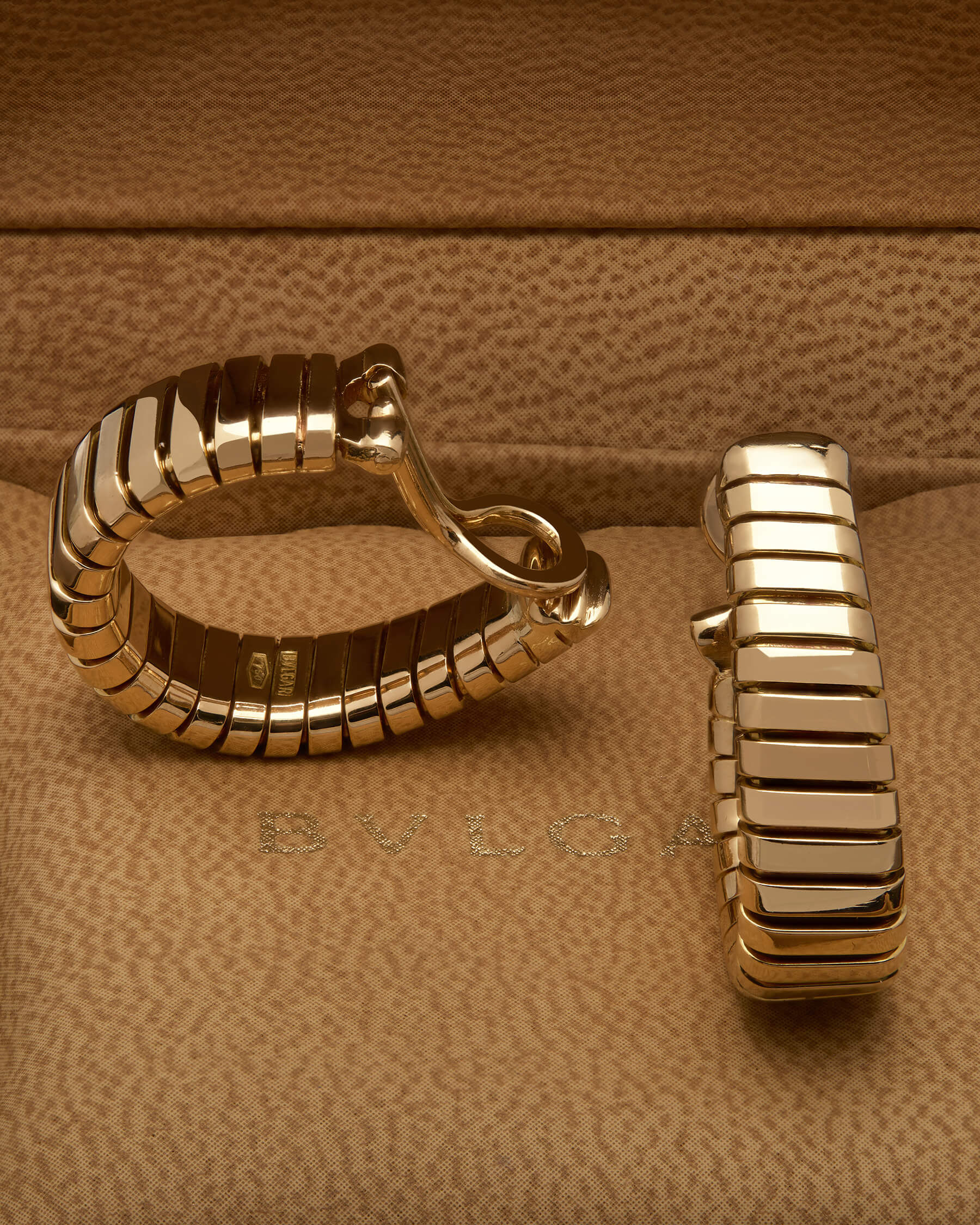 Orecchini cerchio Bulgari tubogas in oro giallo