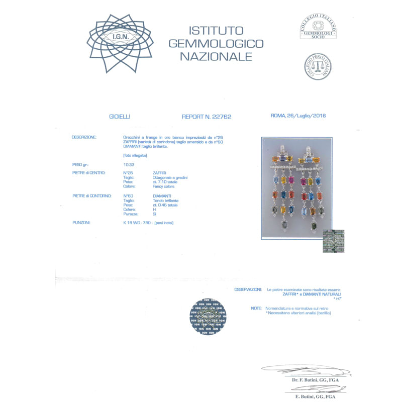Orecchini con diamanti 0,46ct tot e zaffiri 7,10ct tot
