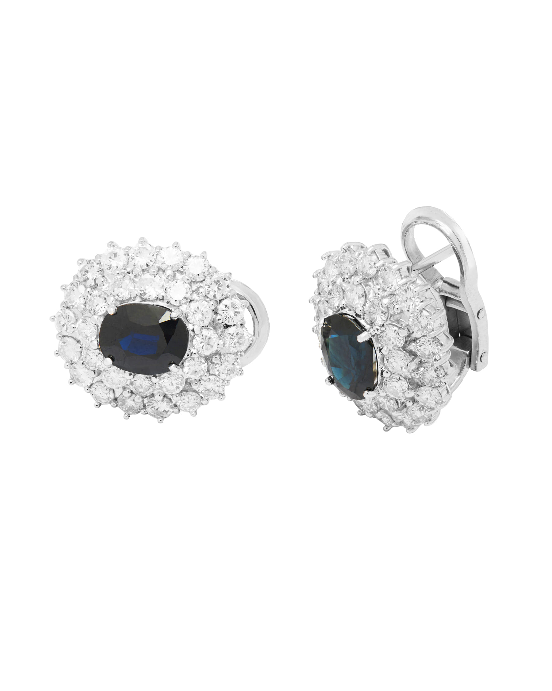 Orecchini fiore con doppio giro di diamanti e zaffiro centrale