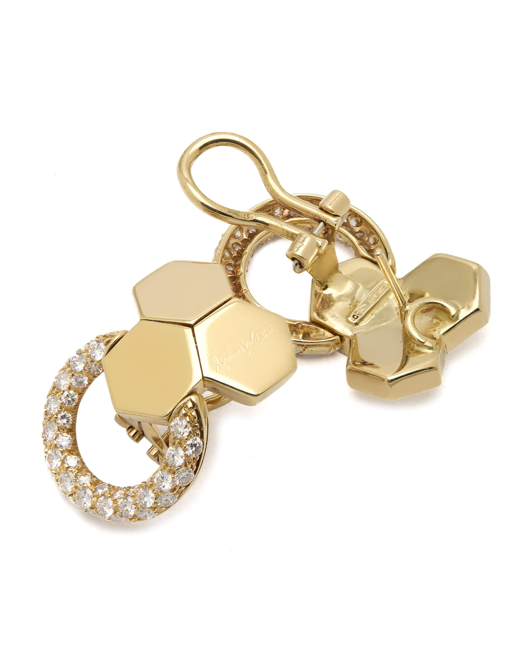 Orecchini Gianni Carità in oro giallo 18kt e diamanti 1,30ct. Misure 2,5×1,8cm