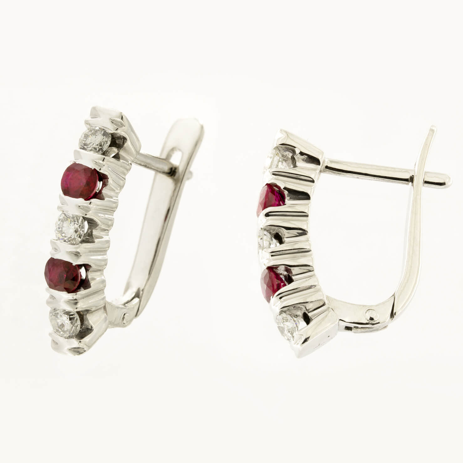 Orecchini realizzati in oro bianco 18kt con diamanti taglio round 0,36ct tot e rubini 0,40ct tot