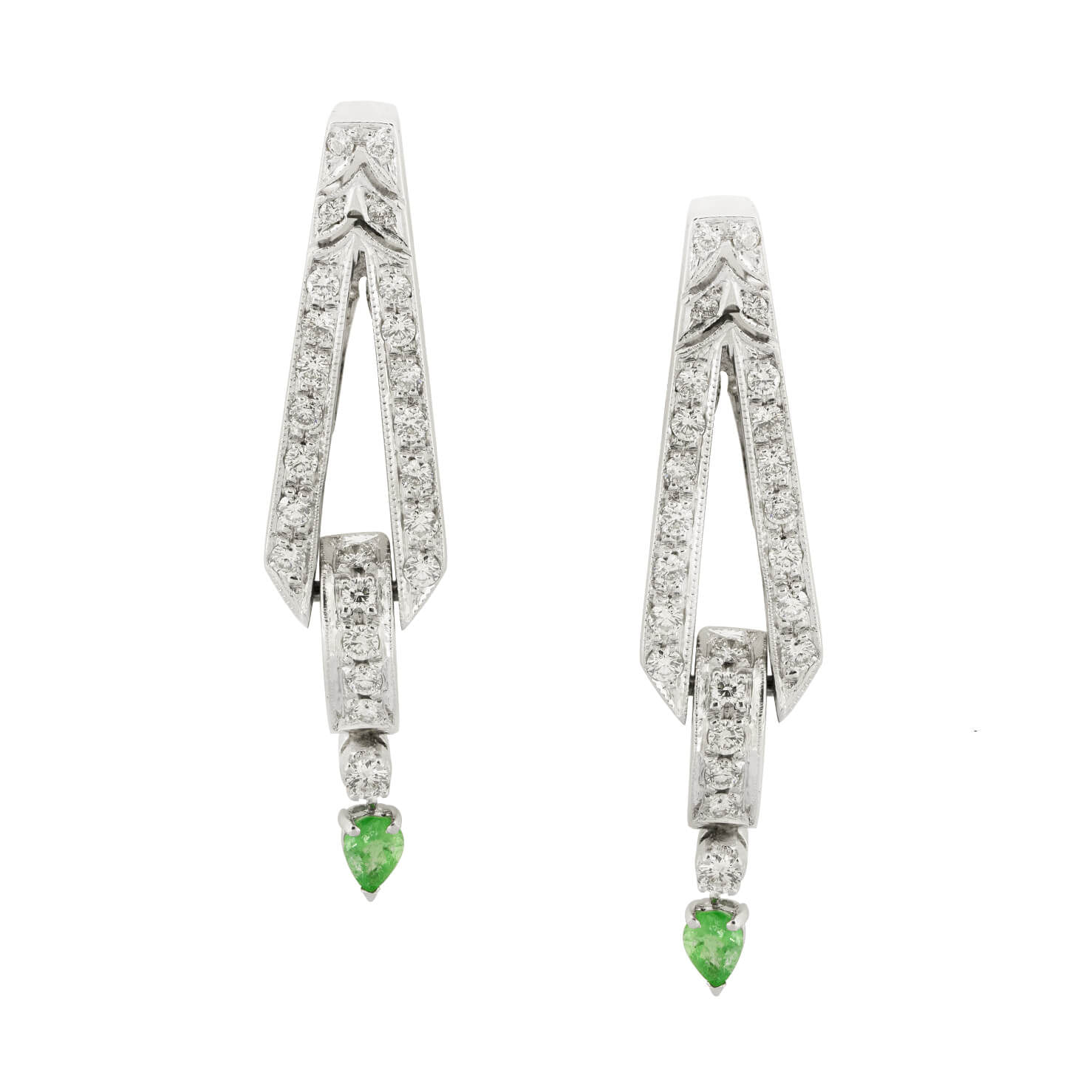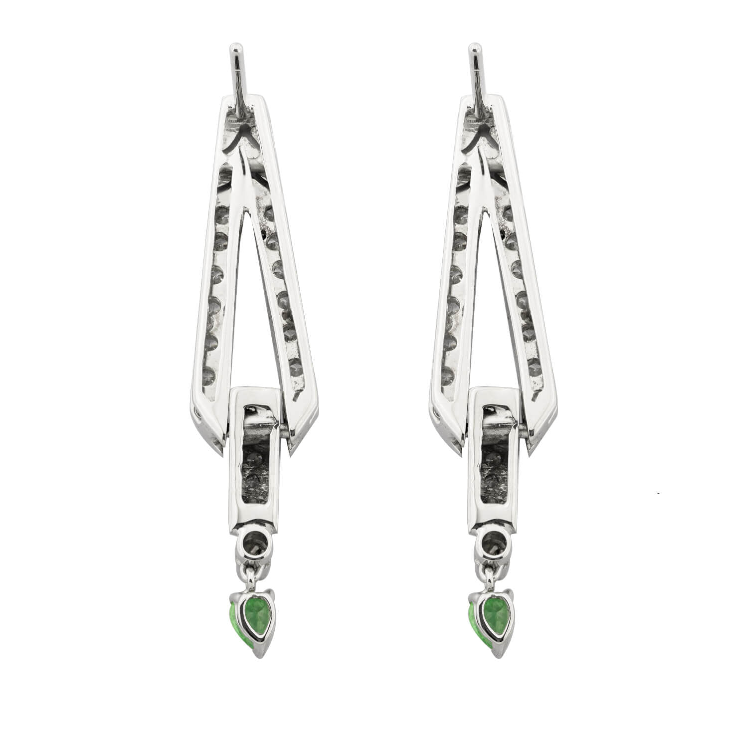 Orecchini realizzati in oro bianco 18kt con diamanti taglio round 1,05 e smeraldi taglio goccia 0,29ct tot. Misure 4×0,80cm. L’articolo è una nuova creazione