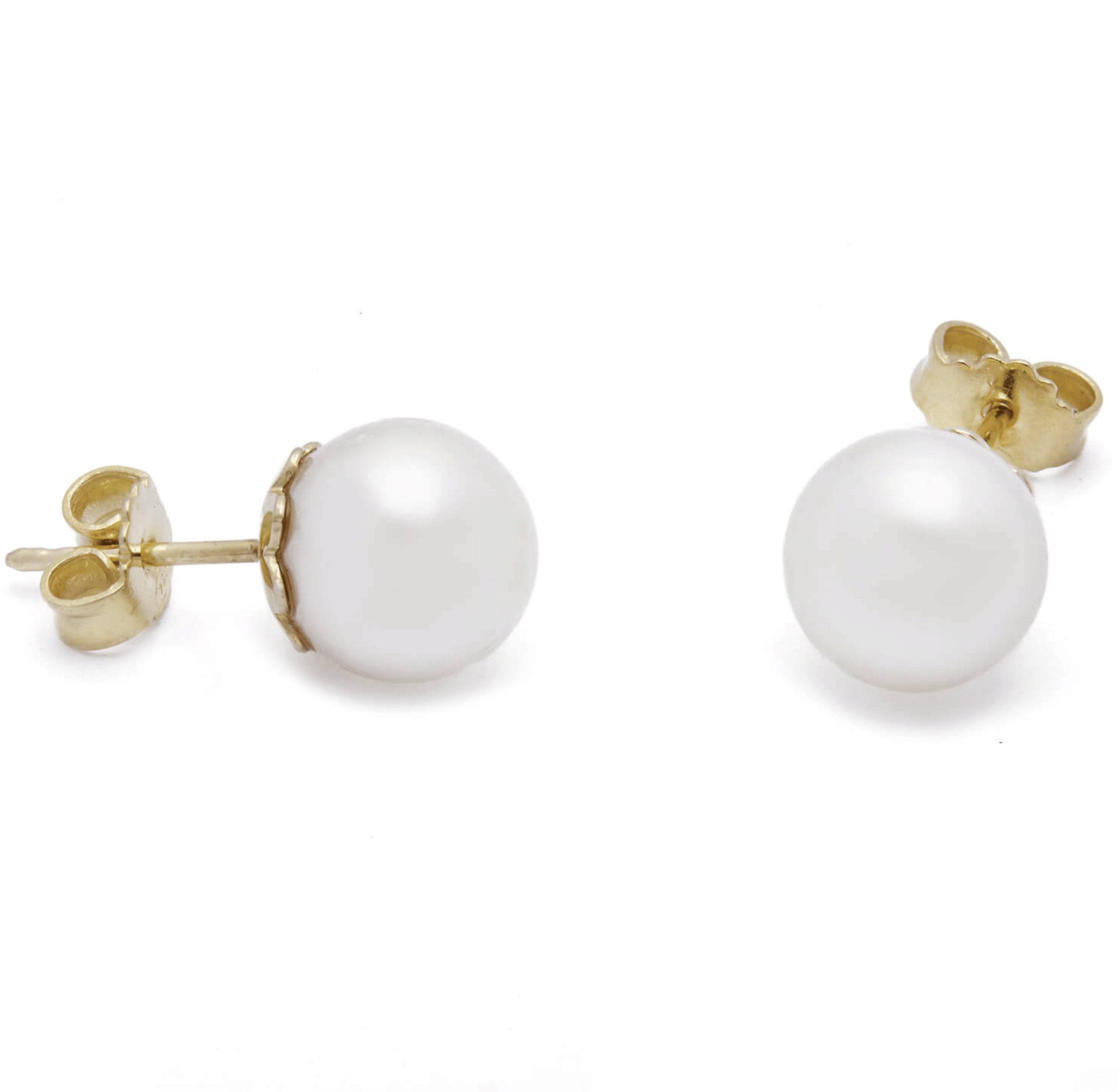 Orecchini realizzati in oro giallo 18kt a lobo con perle da 9mm. Lunghezza 2cm