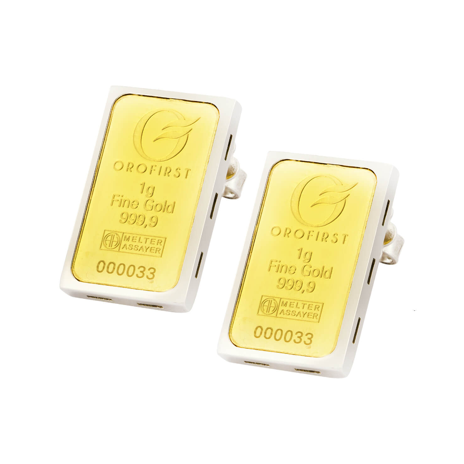 Orecchini lingotto da 1gr realizzati in oro bianco 18kt e giallo 24kt. L’articolo è una nuova creazione
