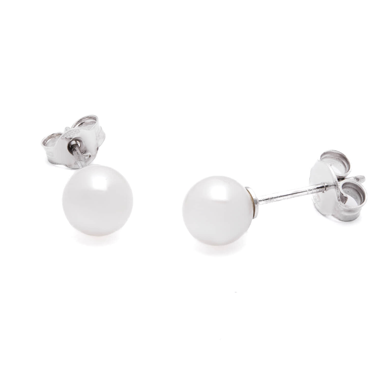 Orecchini lobo in oro bianco con perle da 6,5mm