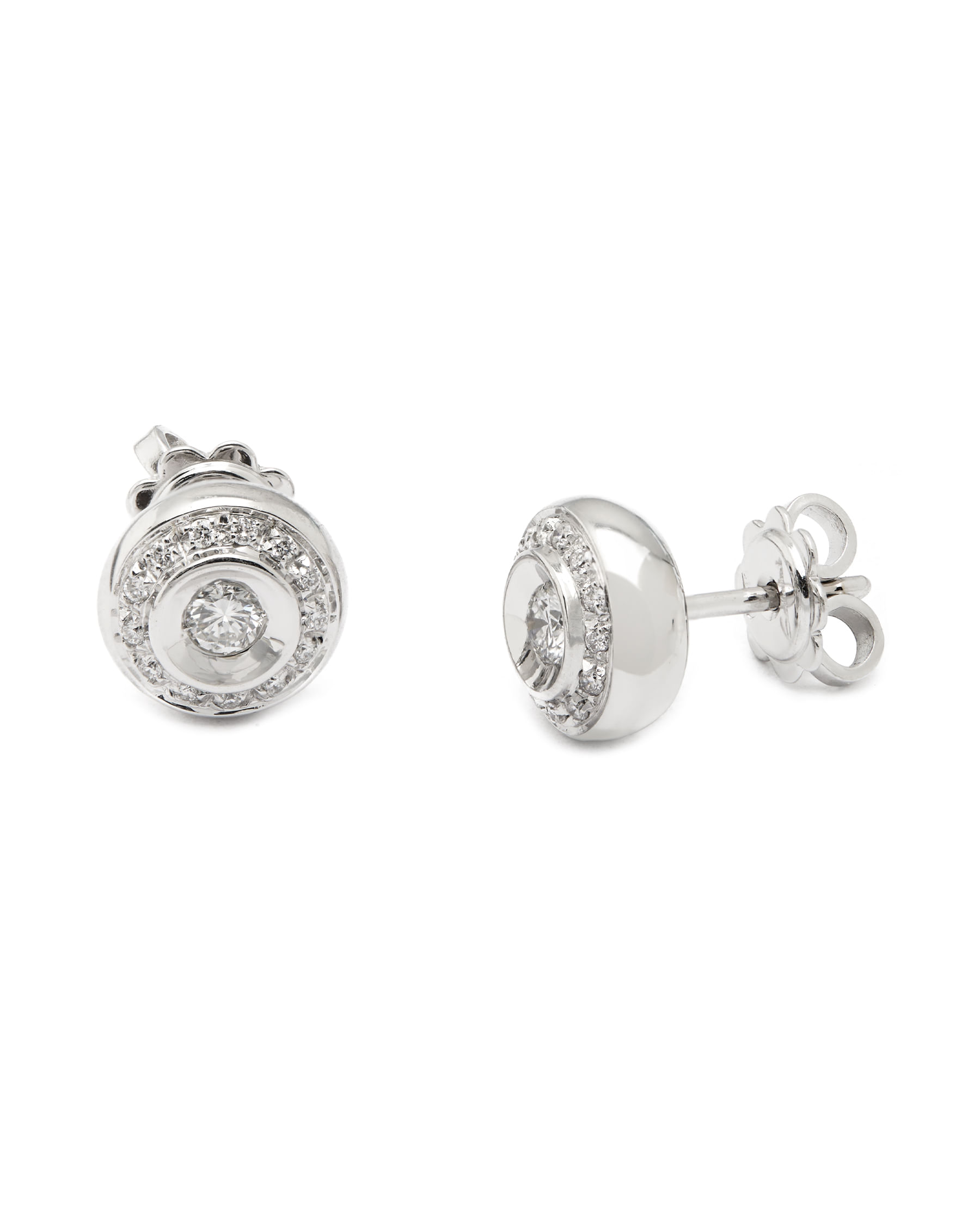 Orecchini punto luce realizzati in oro bianco 18kt con contorno di diamanti taglio round 0,48ct tot. Diametro 10mm