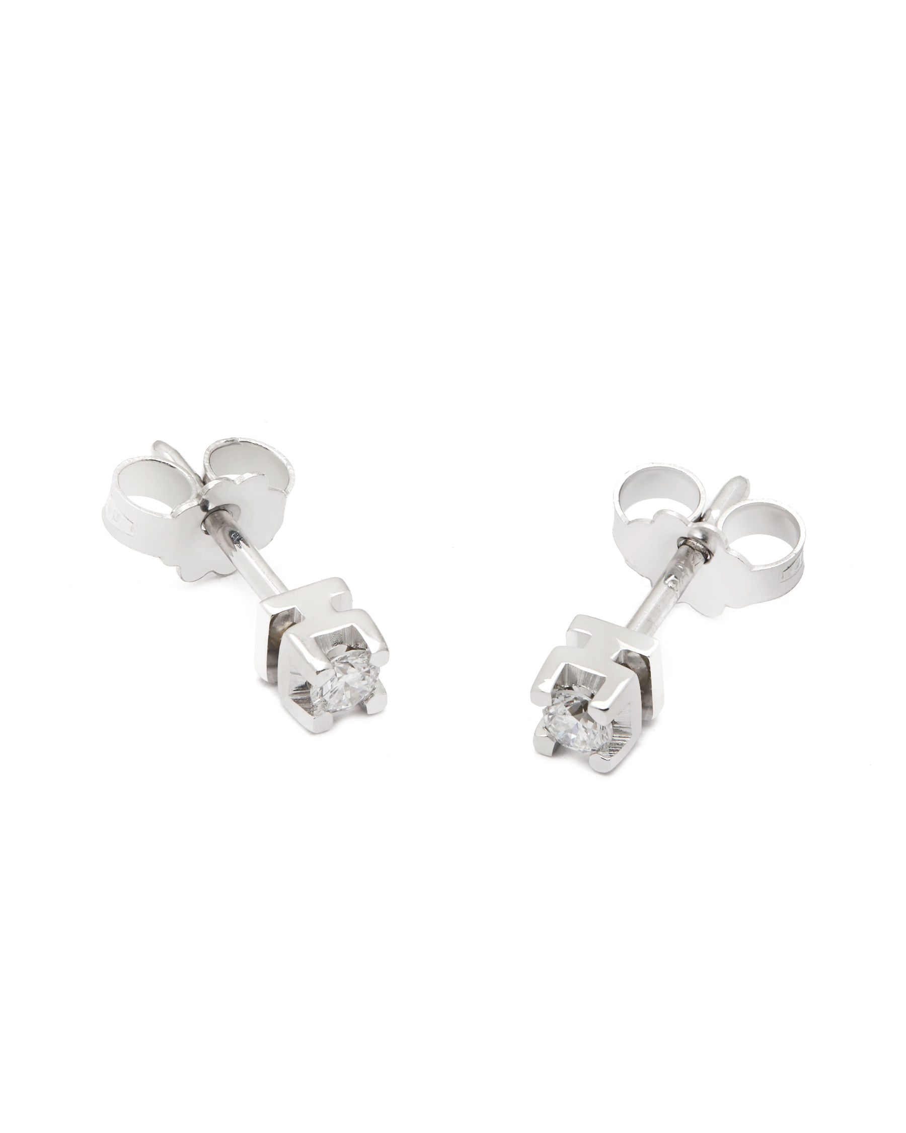 Orecchini punto luce realizzati in oro bianco 18kt e diamanti taglio round 0,10ct