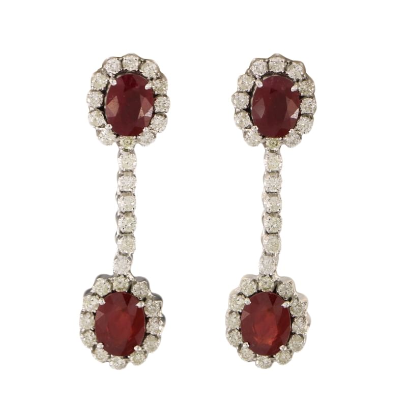 Orecchini realizzati in oro bianco 18kt con diamanti 1,80ct e rubini 6,80ct tot