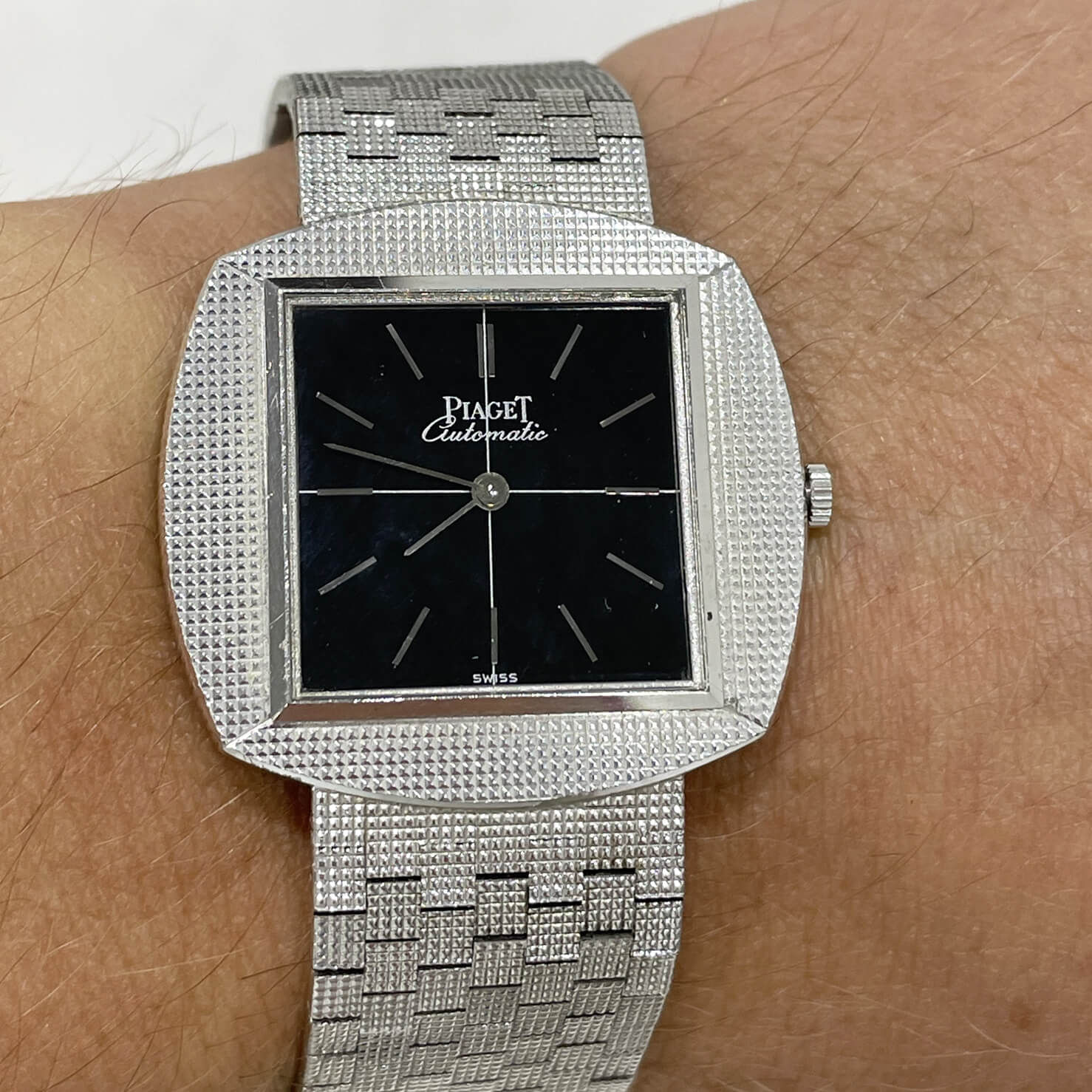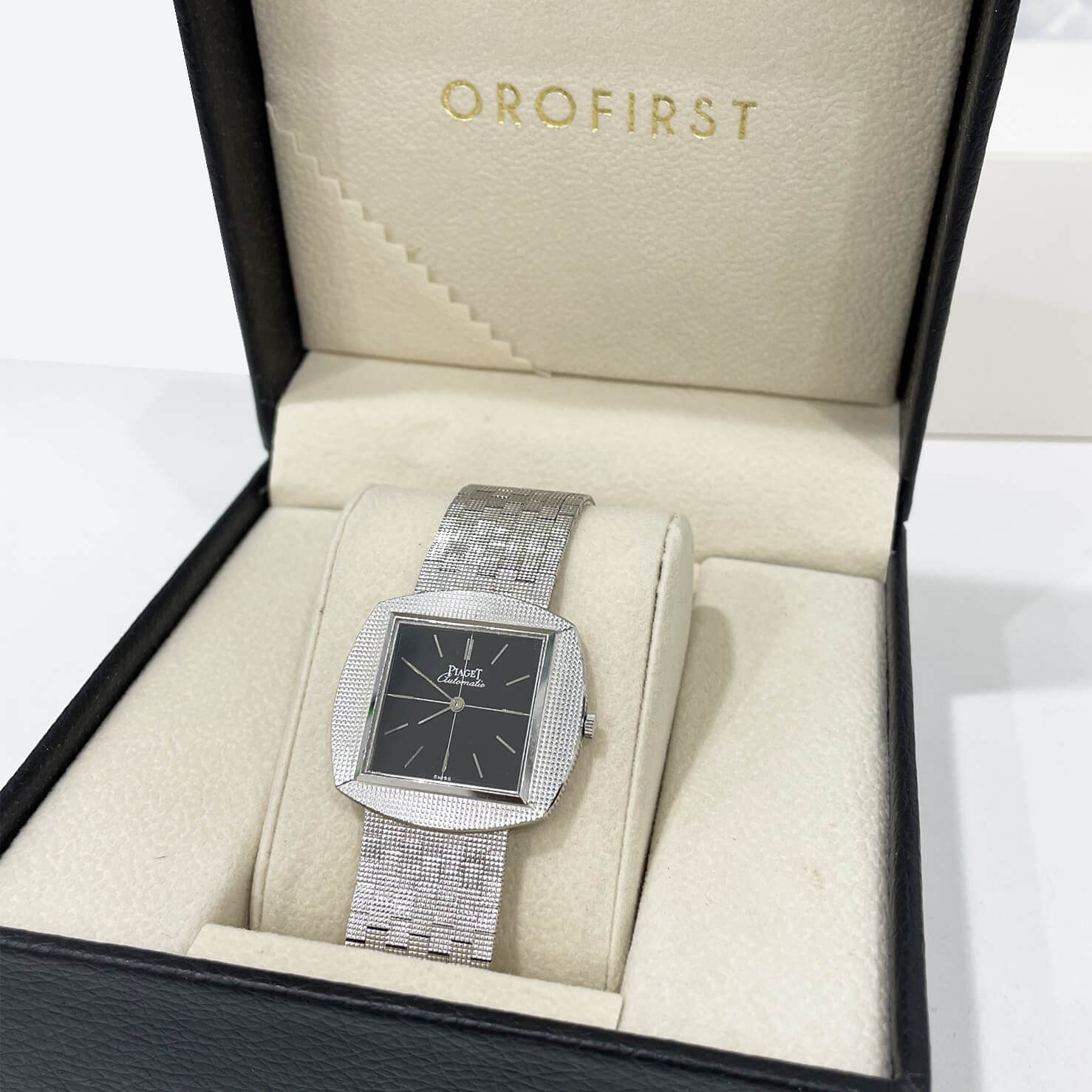 Piaget automatic extraplatte white gold 18kt 33mm black dial ref 12461C4