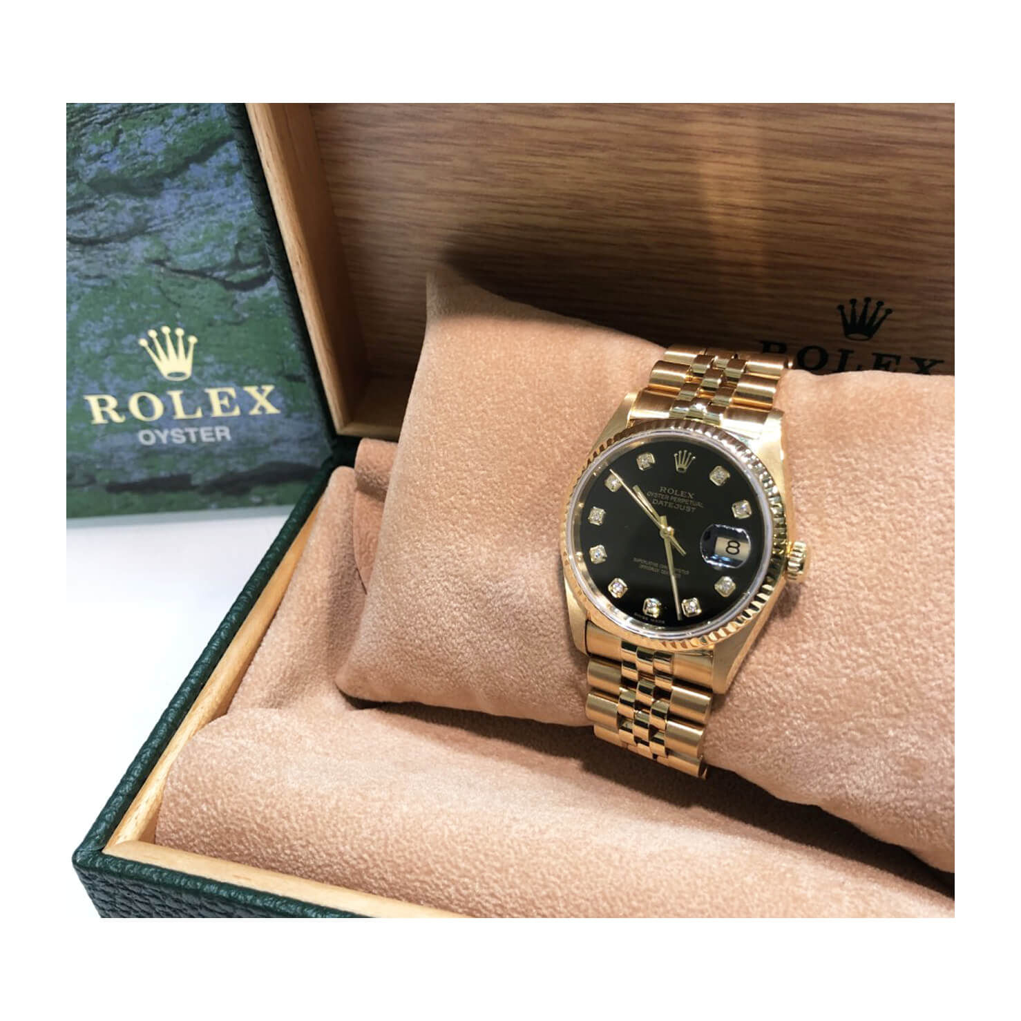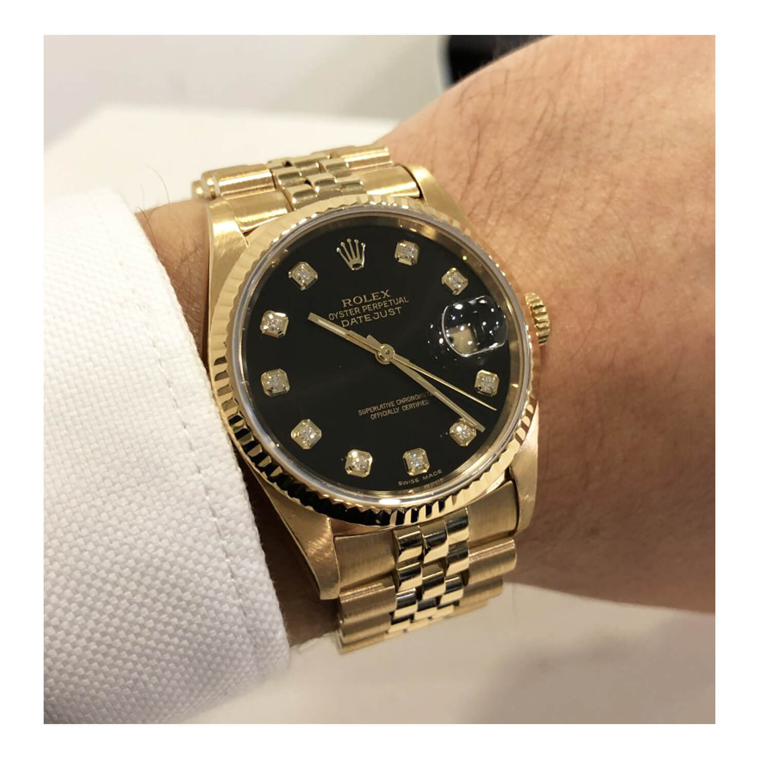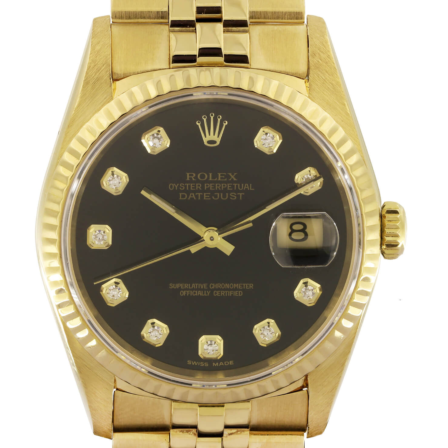 Rolex Datejust Black Dial Diamond Ref 16238