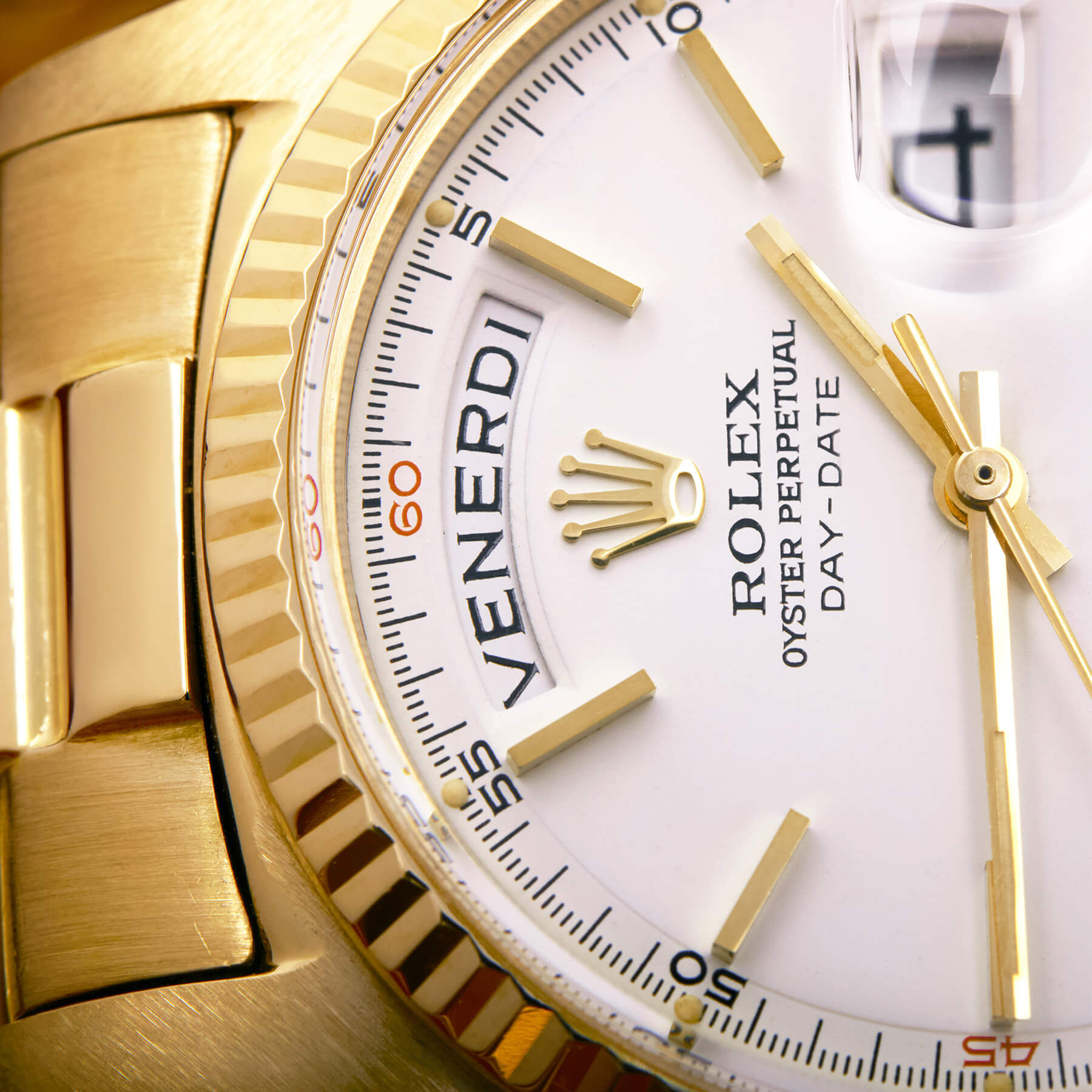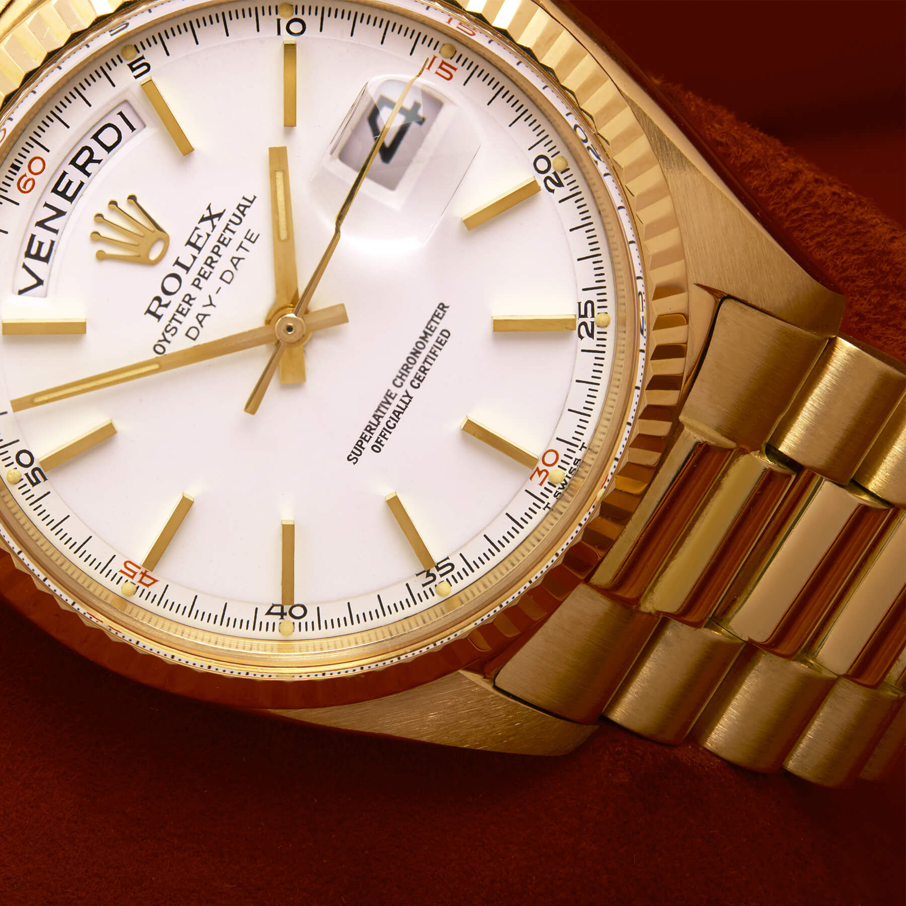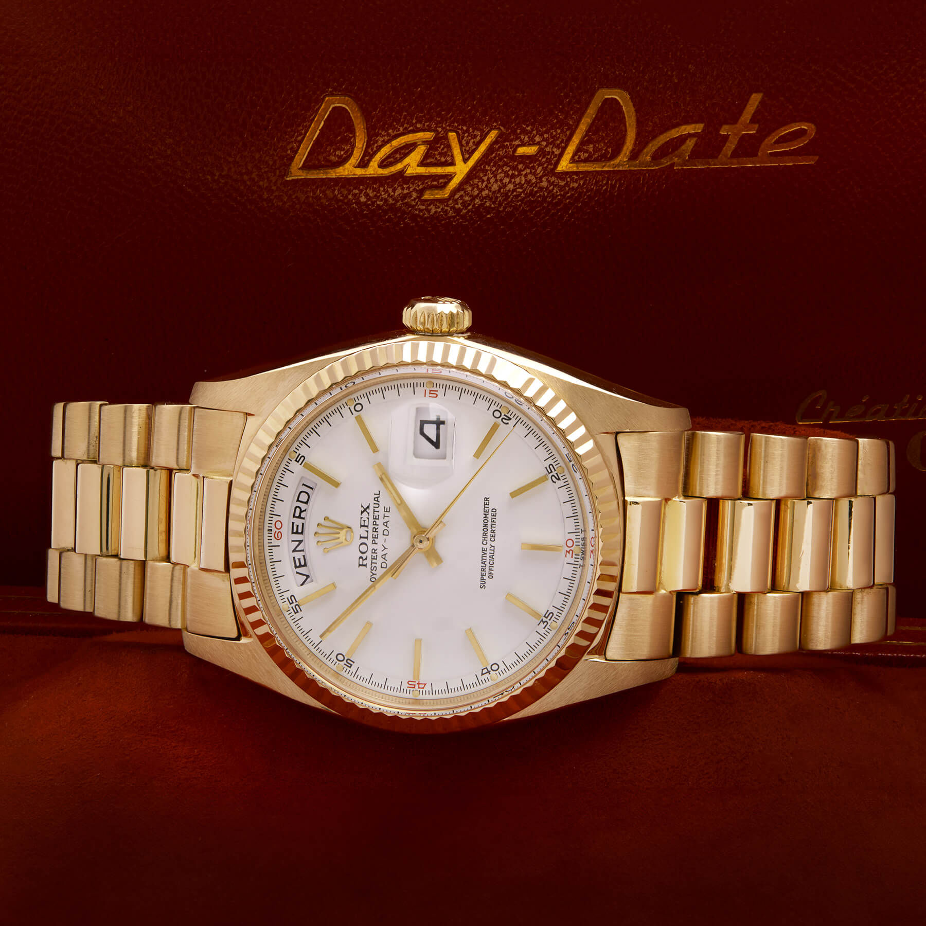 Rolex Day-date 36 yellow gold red quarter dial ref 1803
