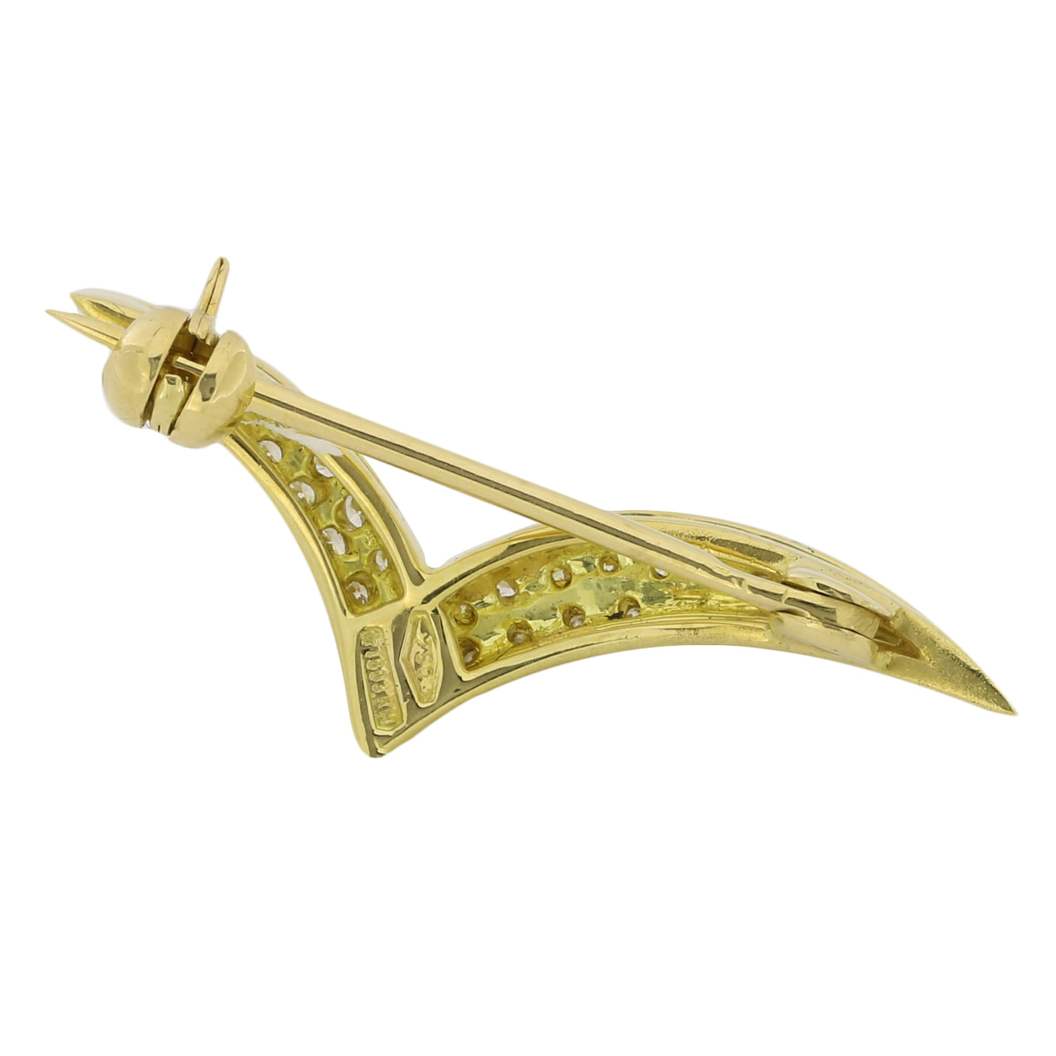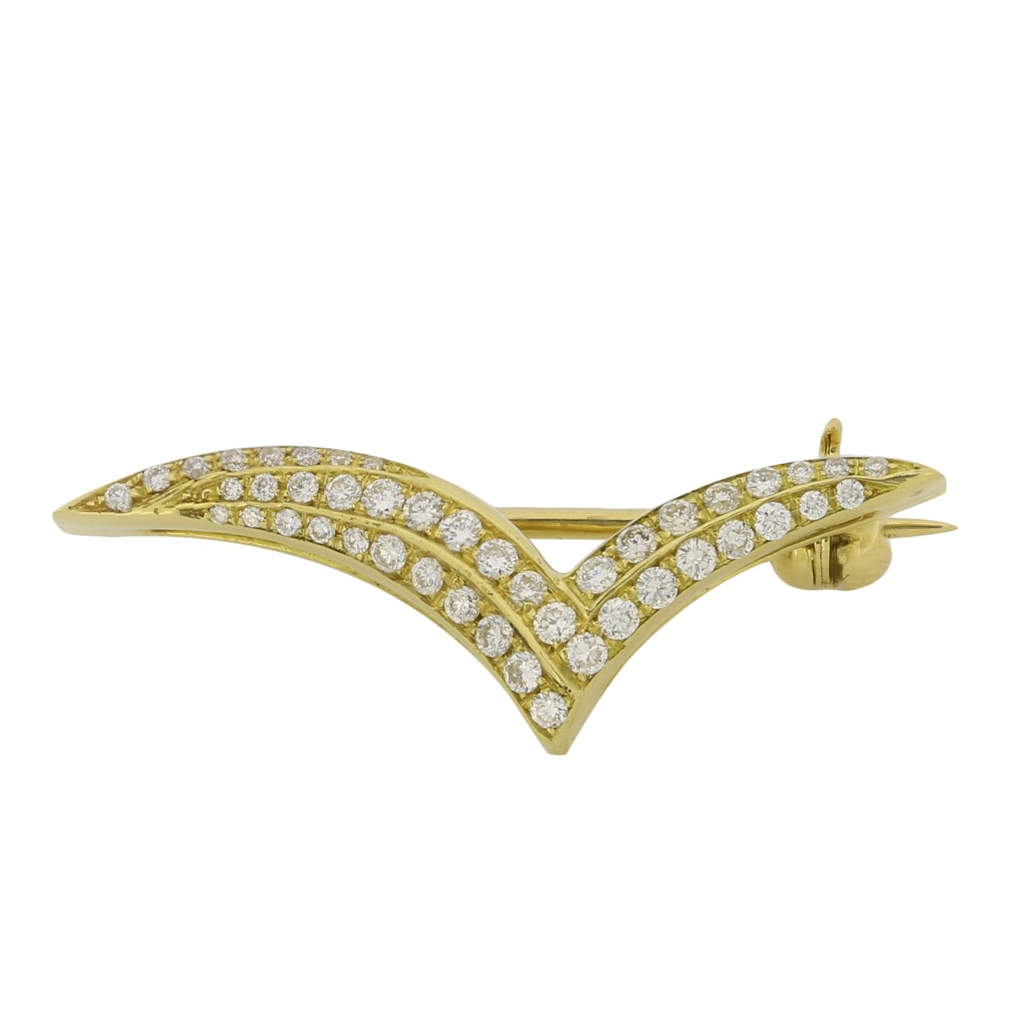 Spilla gabbiano d’oro giallo 18kt con diamanti taglio round 0,33ct