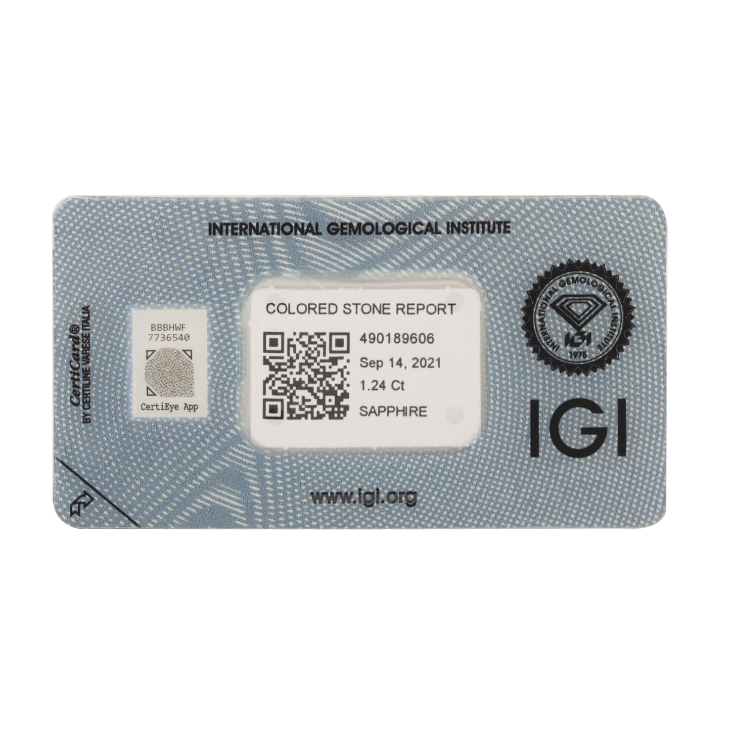 Zaffiro oval cut 1,24ct certificato IGI