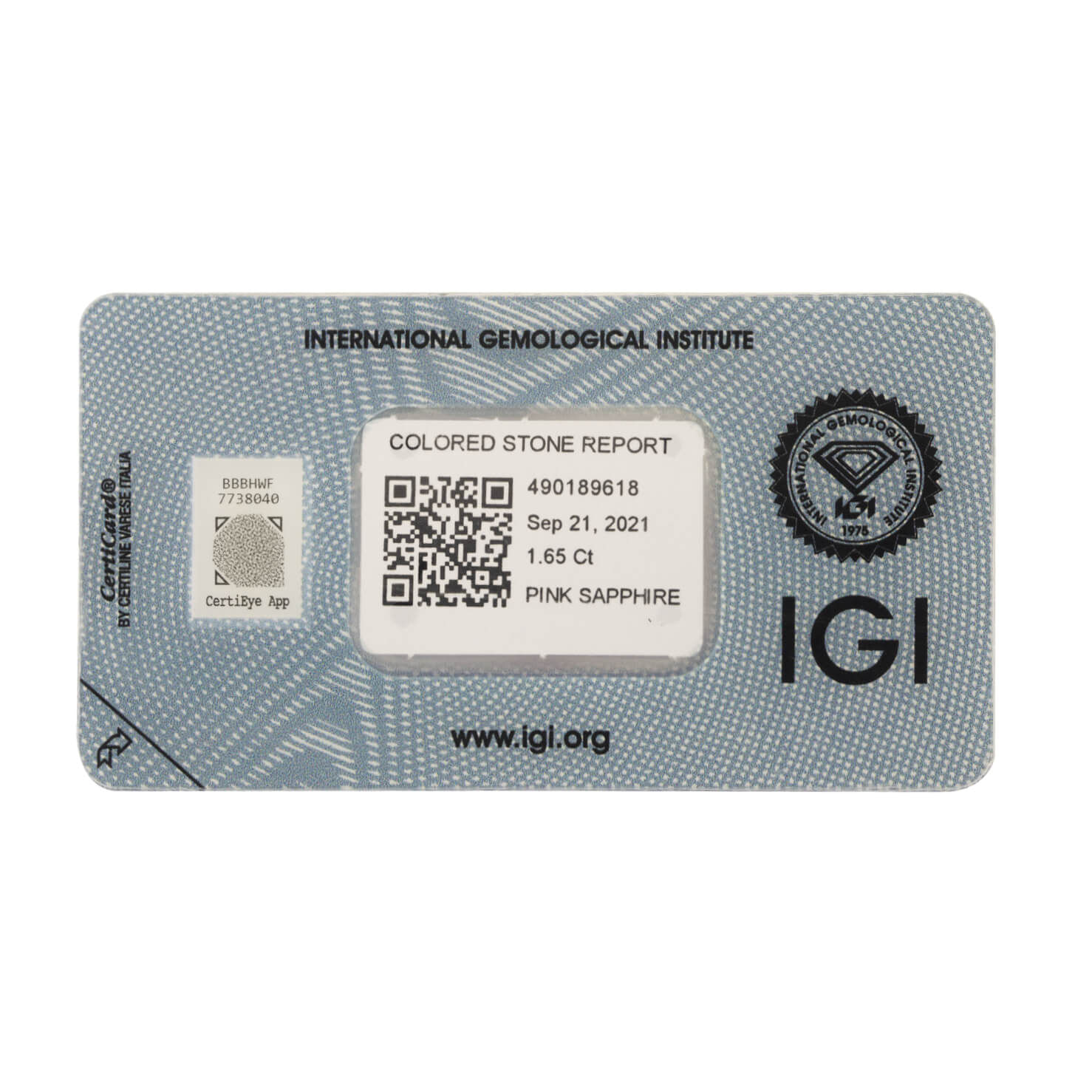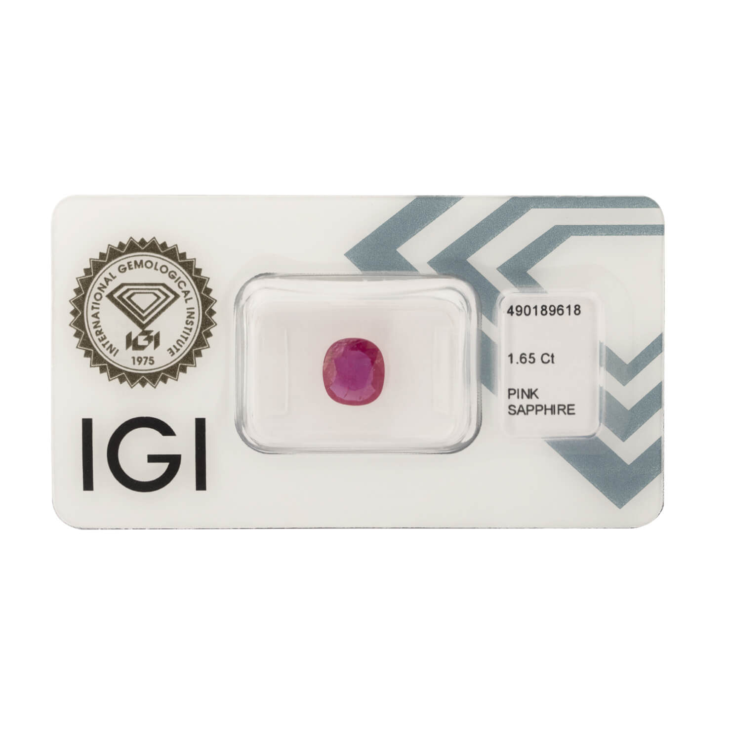 Zaffiro rosa cushion cut 1,65ct certificato IGI