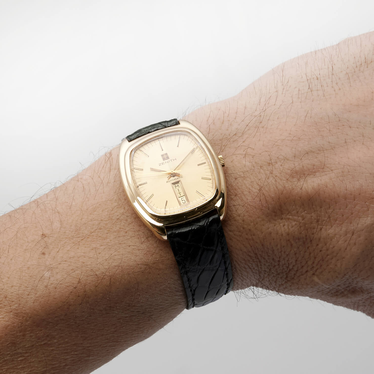 Zenith rectangular day date automatic 18kt ref 30.0150.346